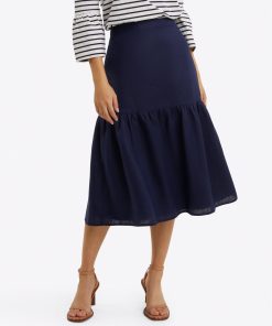 Draper James Women’s Midi Skirt In Linen | White Field Poppy