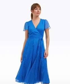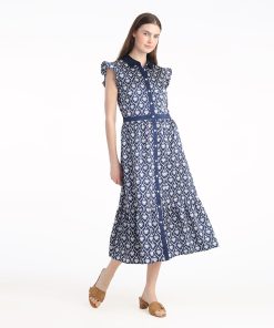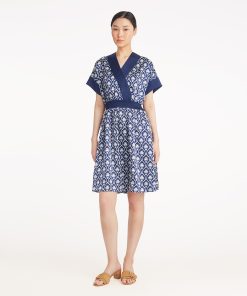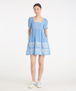 Draper James Women’s Dottie Babydoll Dress With Floral Embroidery | Blue Stripe Floral Embroidery