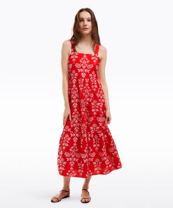 Draper James Women’s Cynthia Embroidered Midi Dress In Red Floral Embroidery | Red Floral Embroidery