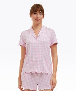 Draper James Women’s Scallop Sara Pajama Set In Pink Gingham | Pink Gingham