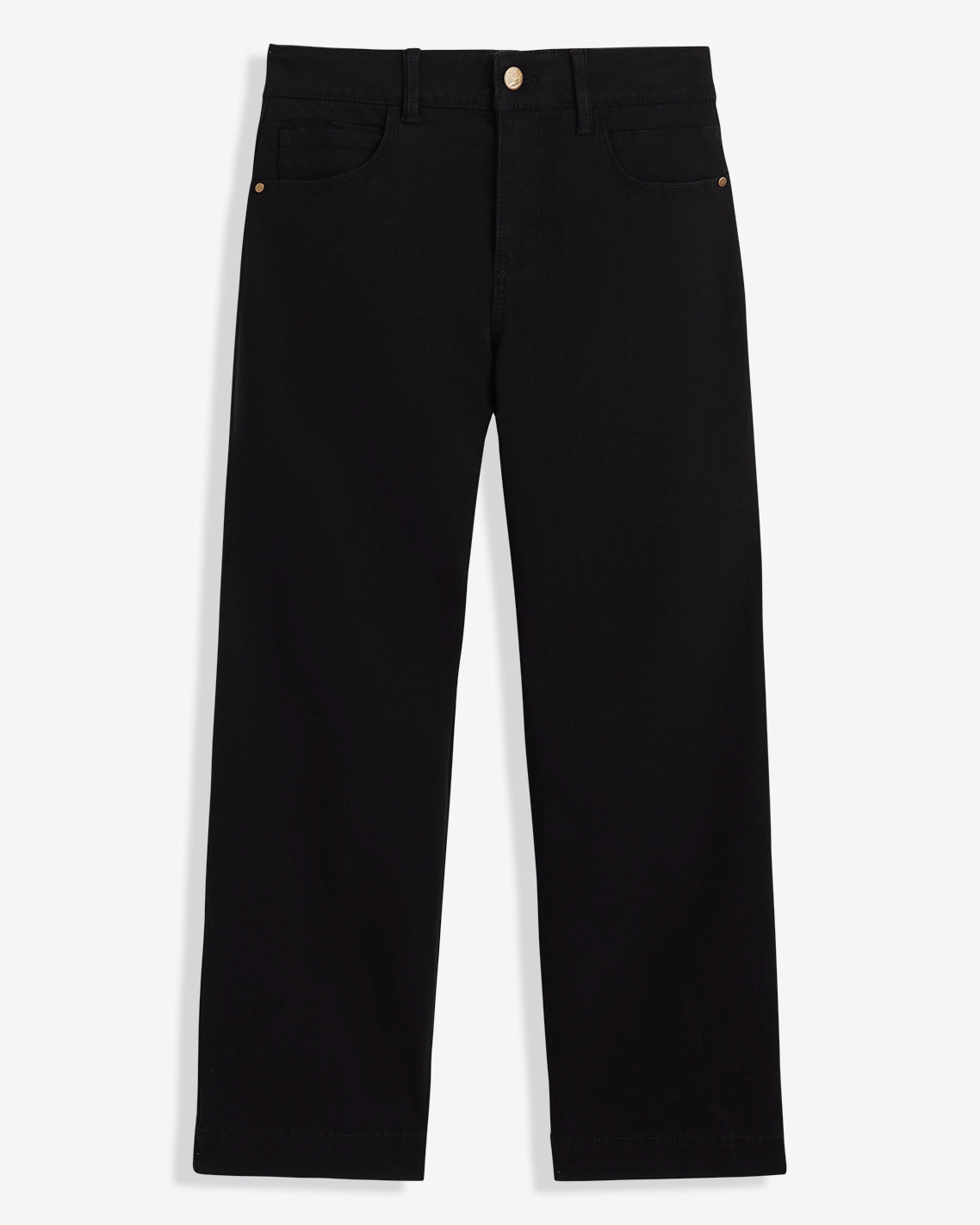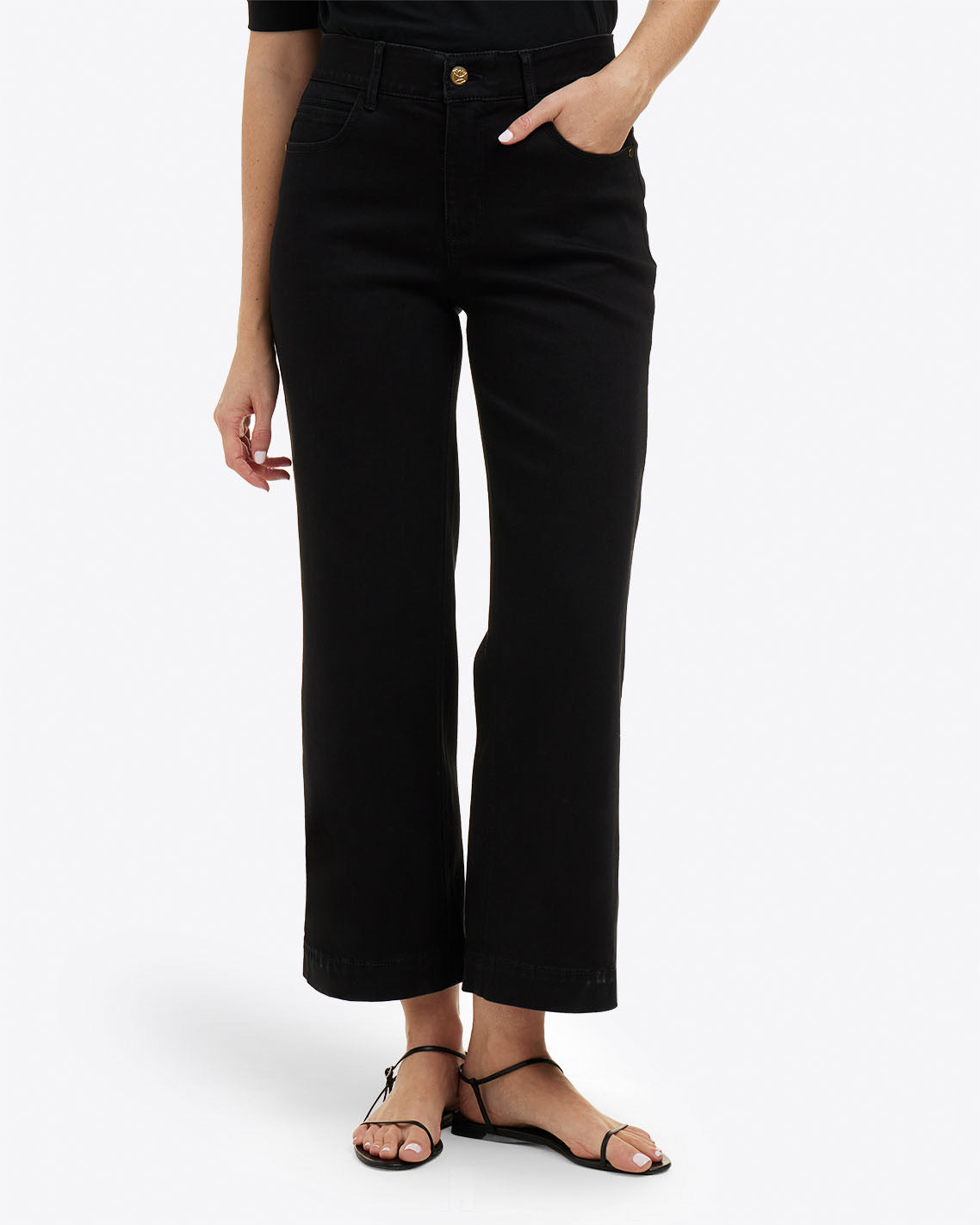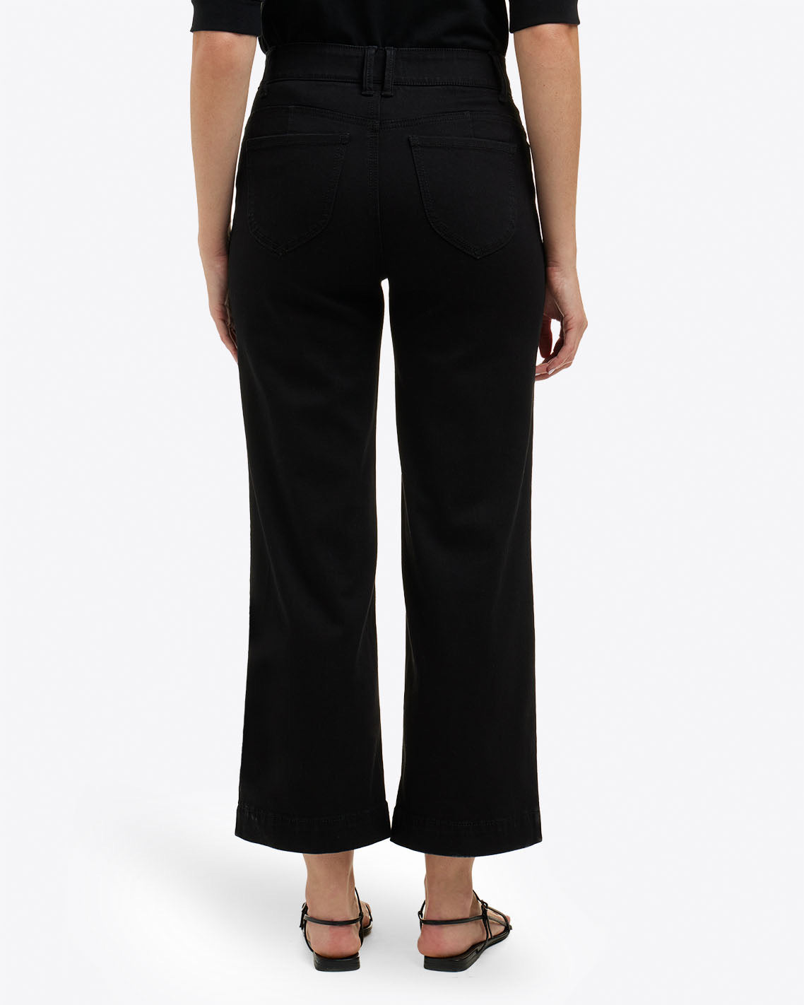 Go wide. Our Five-Pocket Wide Leg Crop Jeans are cut from a black wash denim with the perfect amount of stretch, so they’ll feel as good as they look. Plus, the abbreviated 27-inch inseam works with sneakers, wedges, clogs and flats.