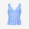 Blue mood. Our Abstract Dahlia Tankini Top is cut from a floral-printed fabric and finished with a scalloped neckline neckline. Wear it with our matching Abstract Dahlia Bottom to create a two-piece bathing suit that’s the perfect balance of comfy and pretty.