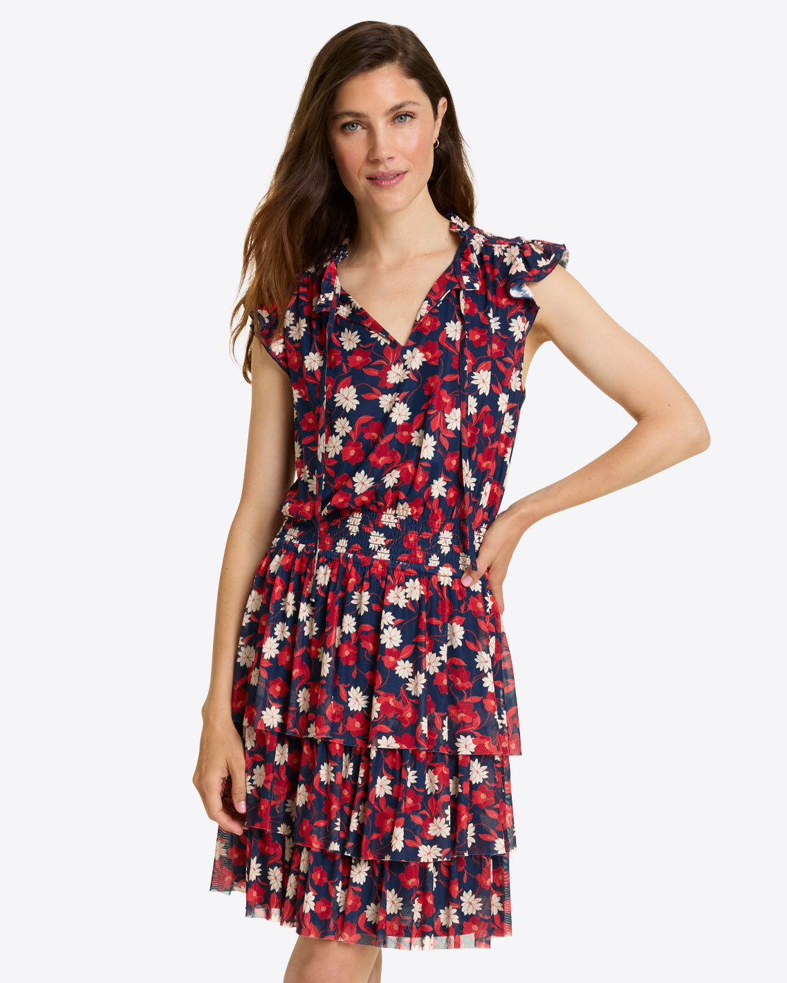 Draper James Women’s Alana Tiered Dress In Stretch Mesh | Nassau Navy Multi Blossom