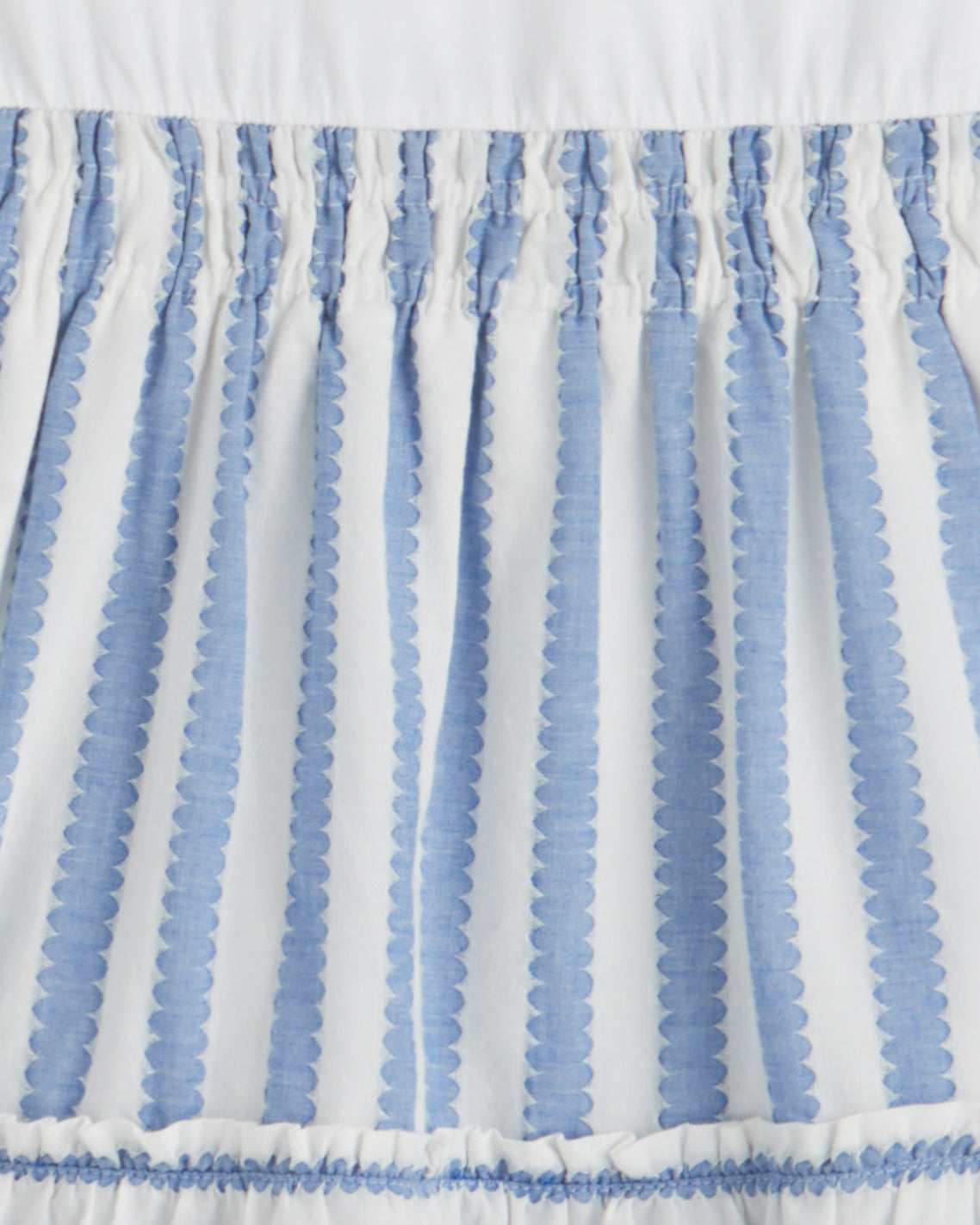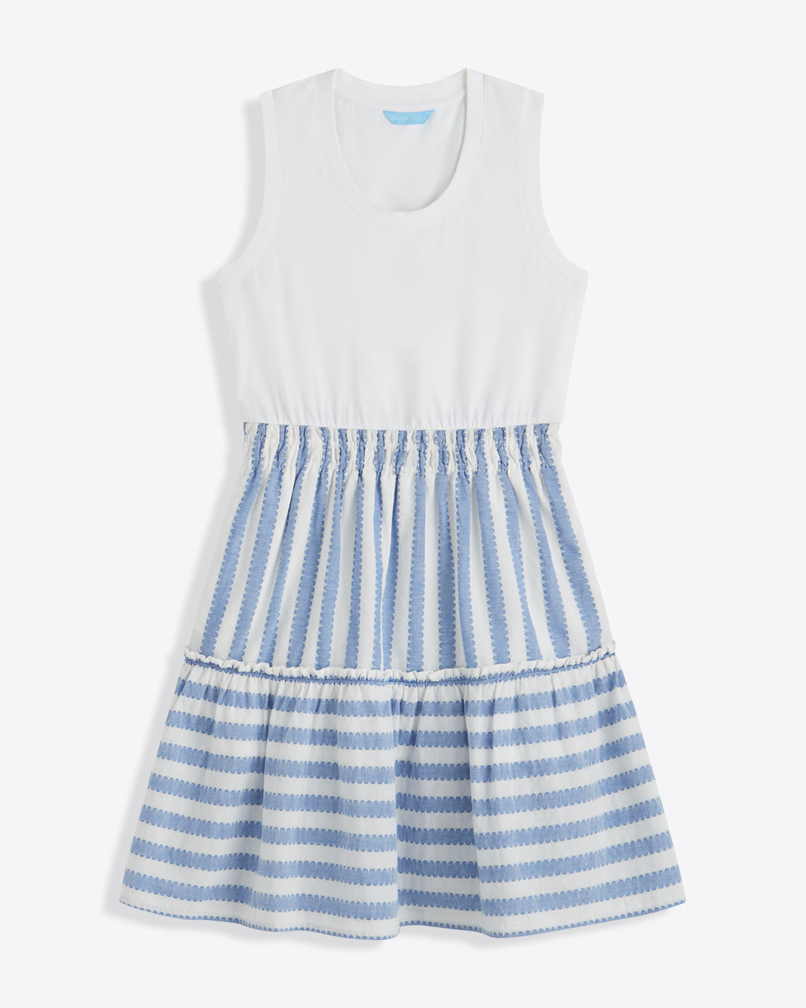 Easy does it. Our Arden Mixed Media Shirtdress in Wave Stripes combines a white tank with a striped, tiered skirt (both cut from 100% cotton) for a perfectly-matched 60-second outfit. Just add heels!