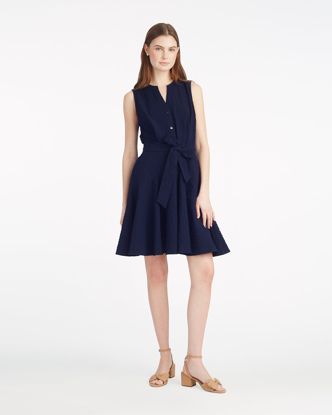 Work it. Our Avery Sleeveless Shirtdress in Seersucker is an office (or Zoom meeting) must-have. Finished with center-front buttons and a tie-front at the waist, it’s the perfect balance of ease and polish. Of course, it’s great for the weekend, too. Just add sandals!