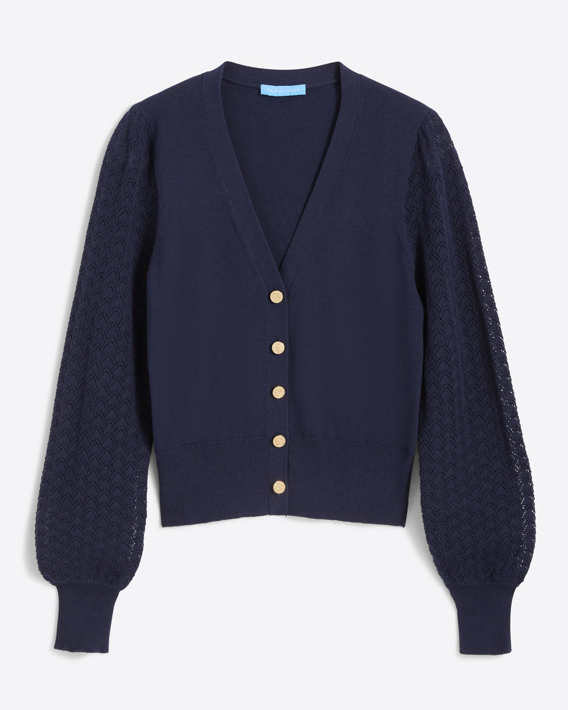 The perfect spring sweater, if we do say so ourselves. The Pointelle Sleeve Cardigan is made of 100% soft, breathable (and easy to care for) cotton. Blousy pointelle sleeves with fitted cuffs add a feminine touch, while a 5-button v-neck closure allows for a variety of styling options. Wear it buttoned up for a polished look or unbuttoned for a more relaxed vibe. A very versatile addition to your warmer weather wardrobe.