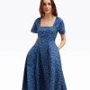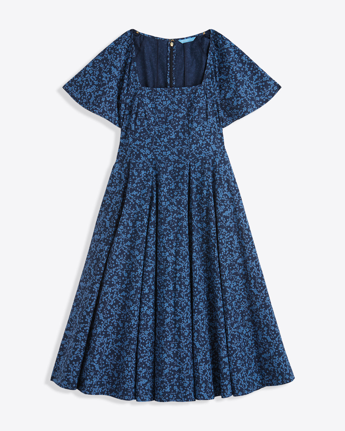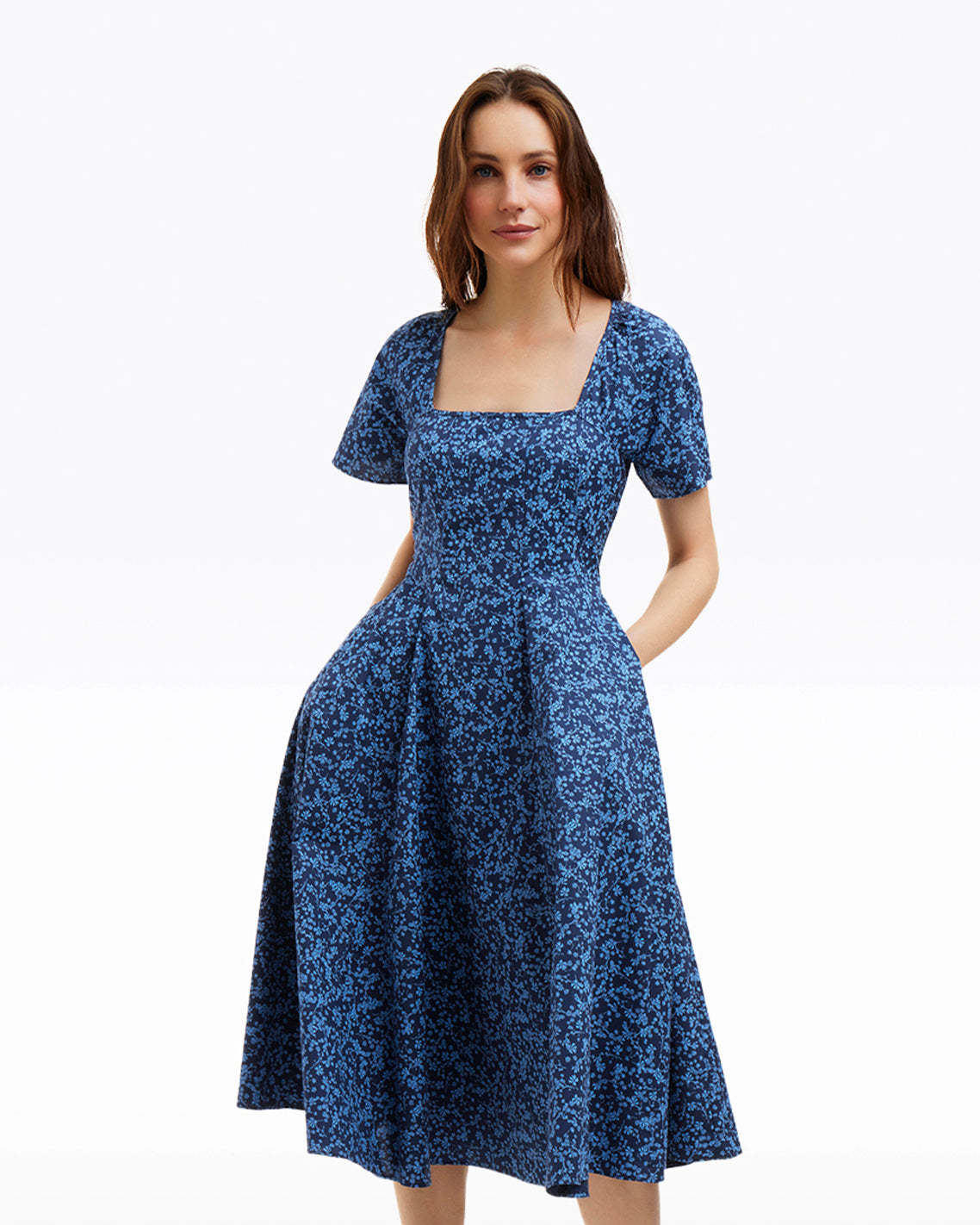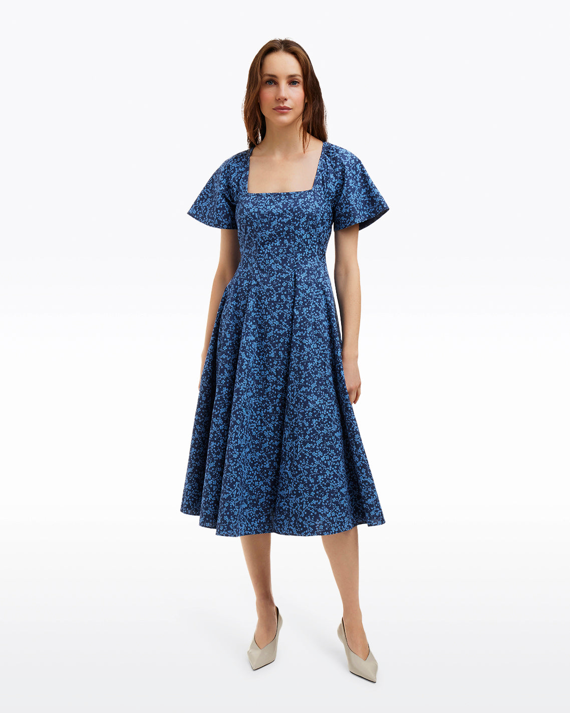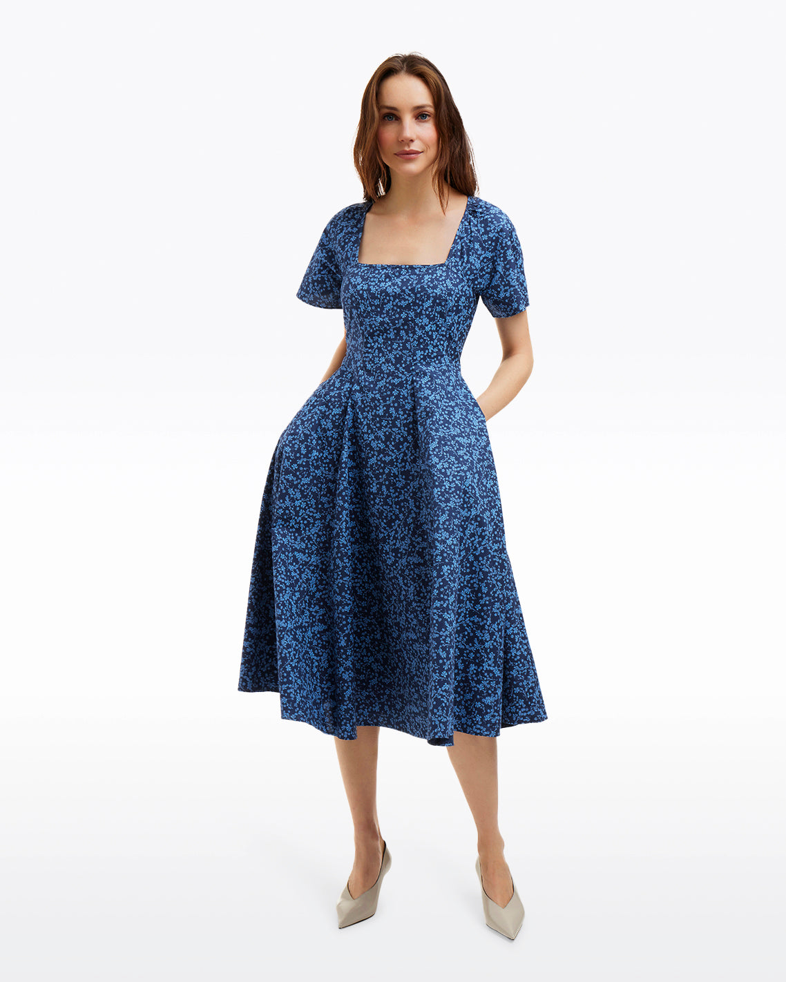 In bloom. Cut from flower-printed stretch poplin and finished with flutter sleeves, a square neckline and a tiered skirt, our Caitlyn Square Neck Midi Dress is perfect for spring. Wear it to brunch with your favorite sneakers or flats, then switch to a pair of high-heeled sandals for dinner, a party or a dinner party.