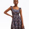 Give it a twirl. Our Carrie Mini Dress is made from printed 100% cotton and finished with a smocked bodice, a square neckline, and ruffles at the shoulders. The length makes it a perfect match for your favorite high-heeled sandals, but you could wear it with slip-on sneakers, too, for a more casual look.