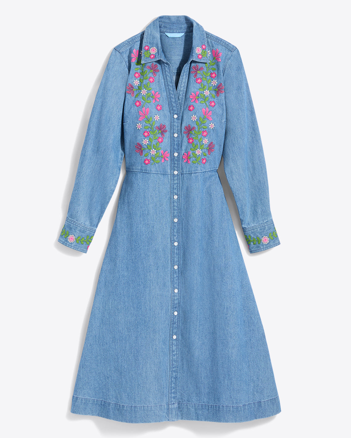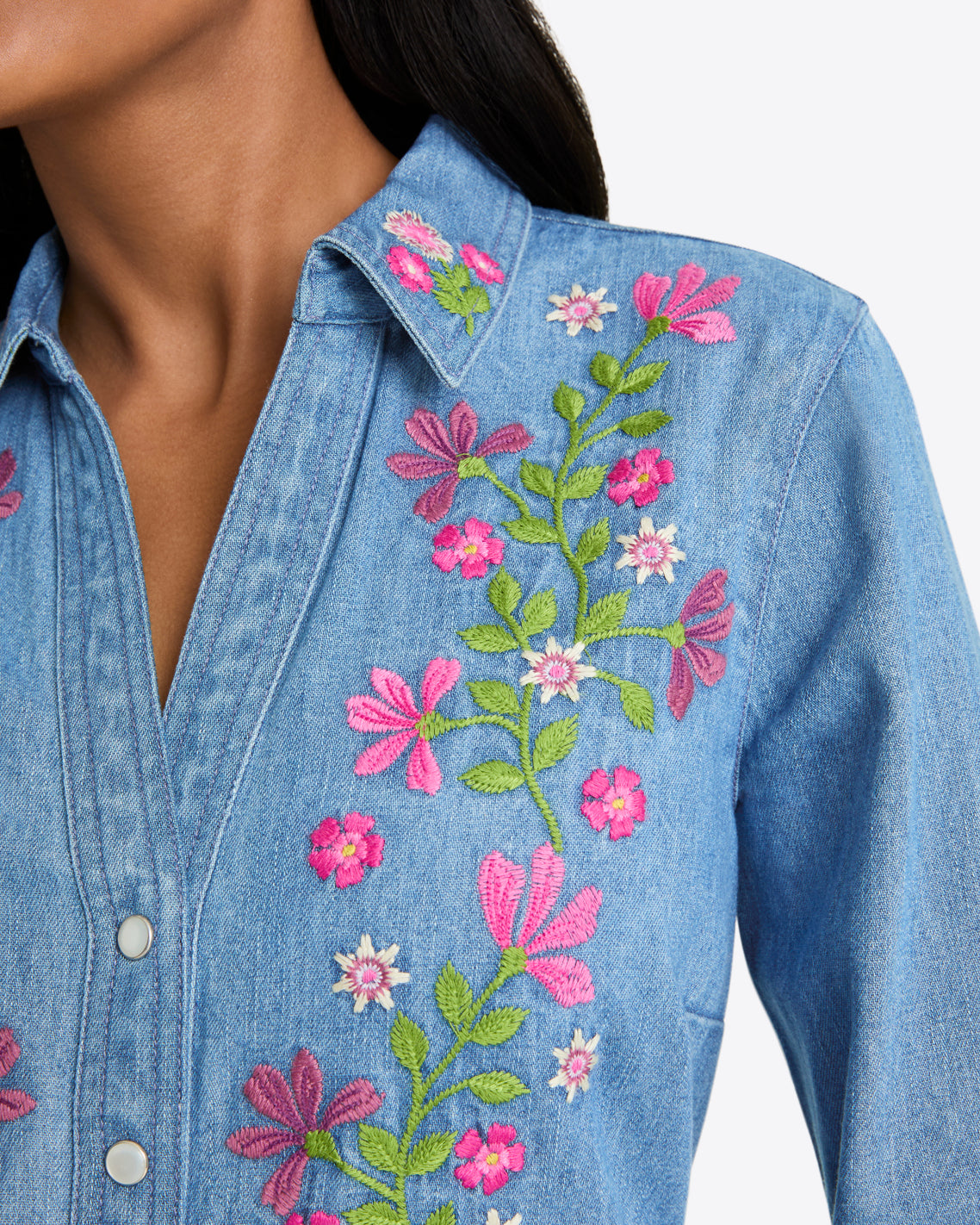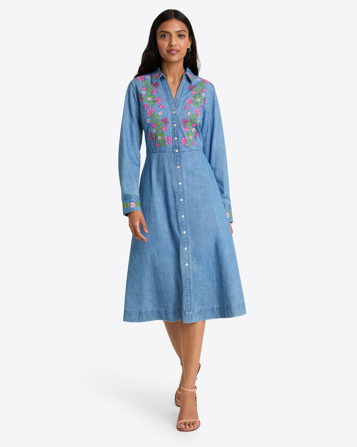 Nice threads. Our Cecilia Embroidered Shirtdress is made from 100% cotton denim and finished with pretty embroidered flowers, for a look that’s casual, comfortable and cute. Wear it with boots or clogs to work, brunch or whatever else you’ve got going on this fall.