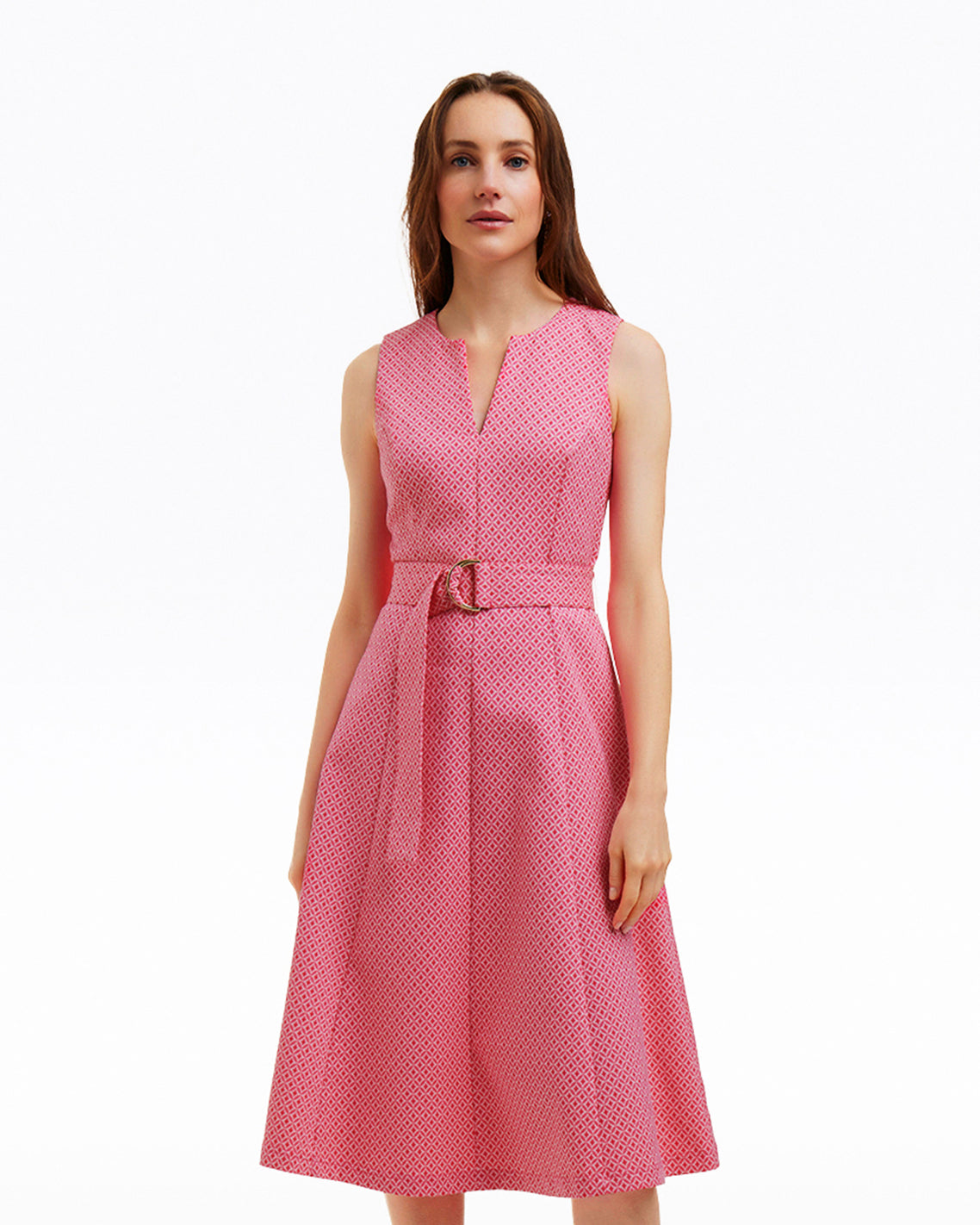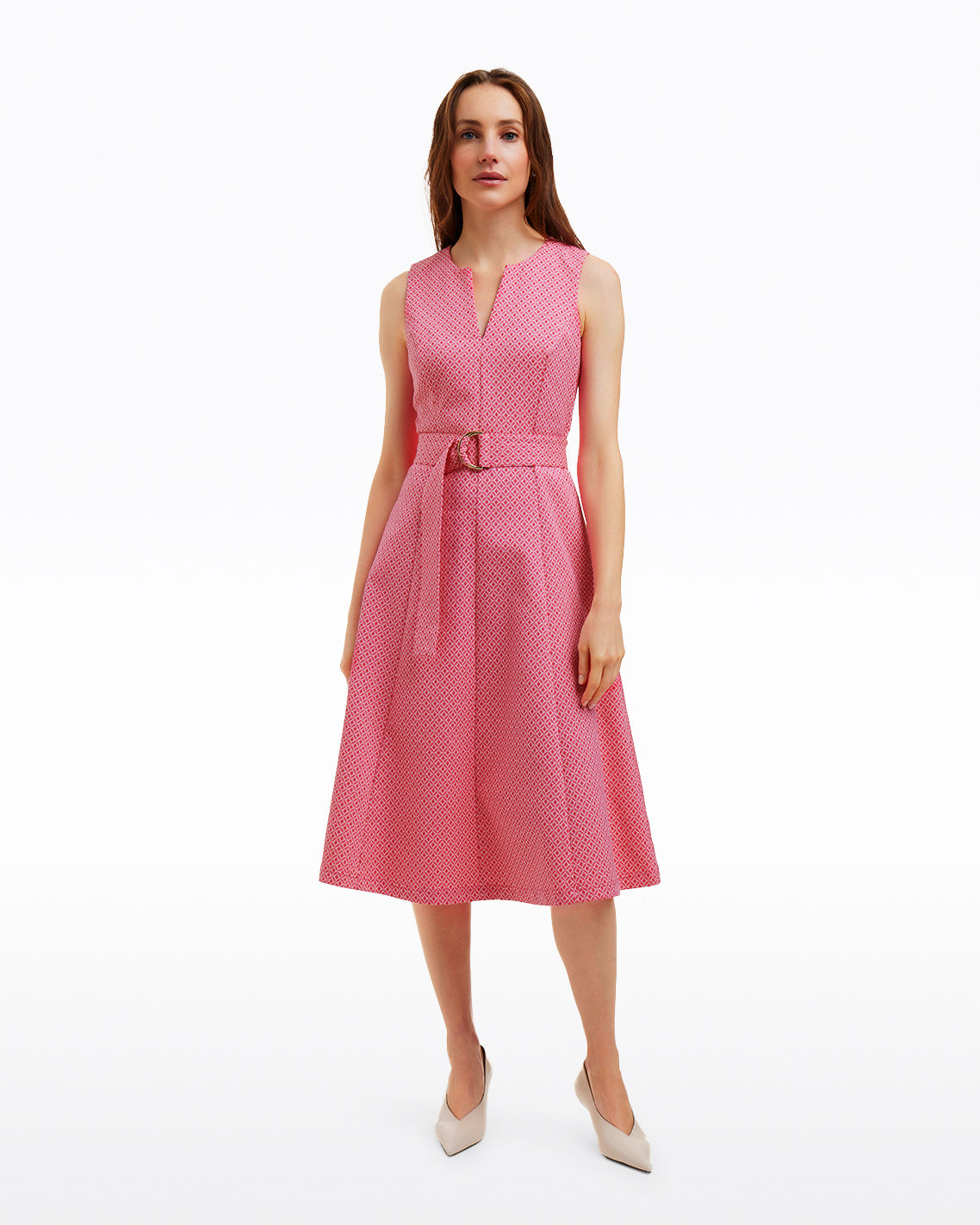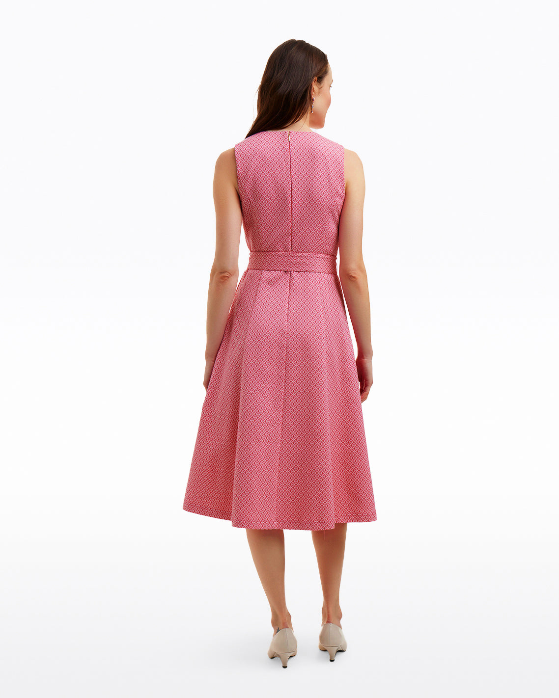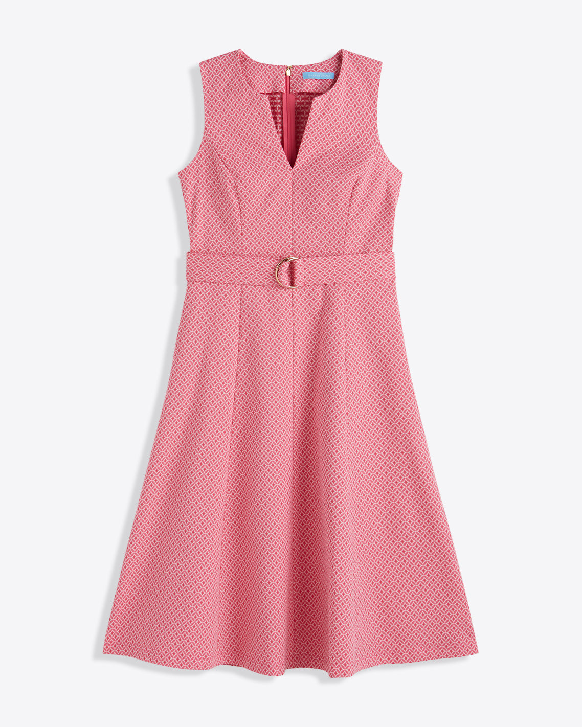 Think pink. Our Charlotte Midi Dress in Circle Geo is made from a substantial stretch-cotton knit and finished with flattering details like a belt and a V-shaped neckline. Wear it with heels to work, dinner or whatever else you’ve got planned.