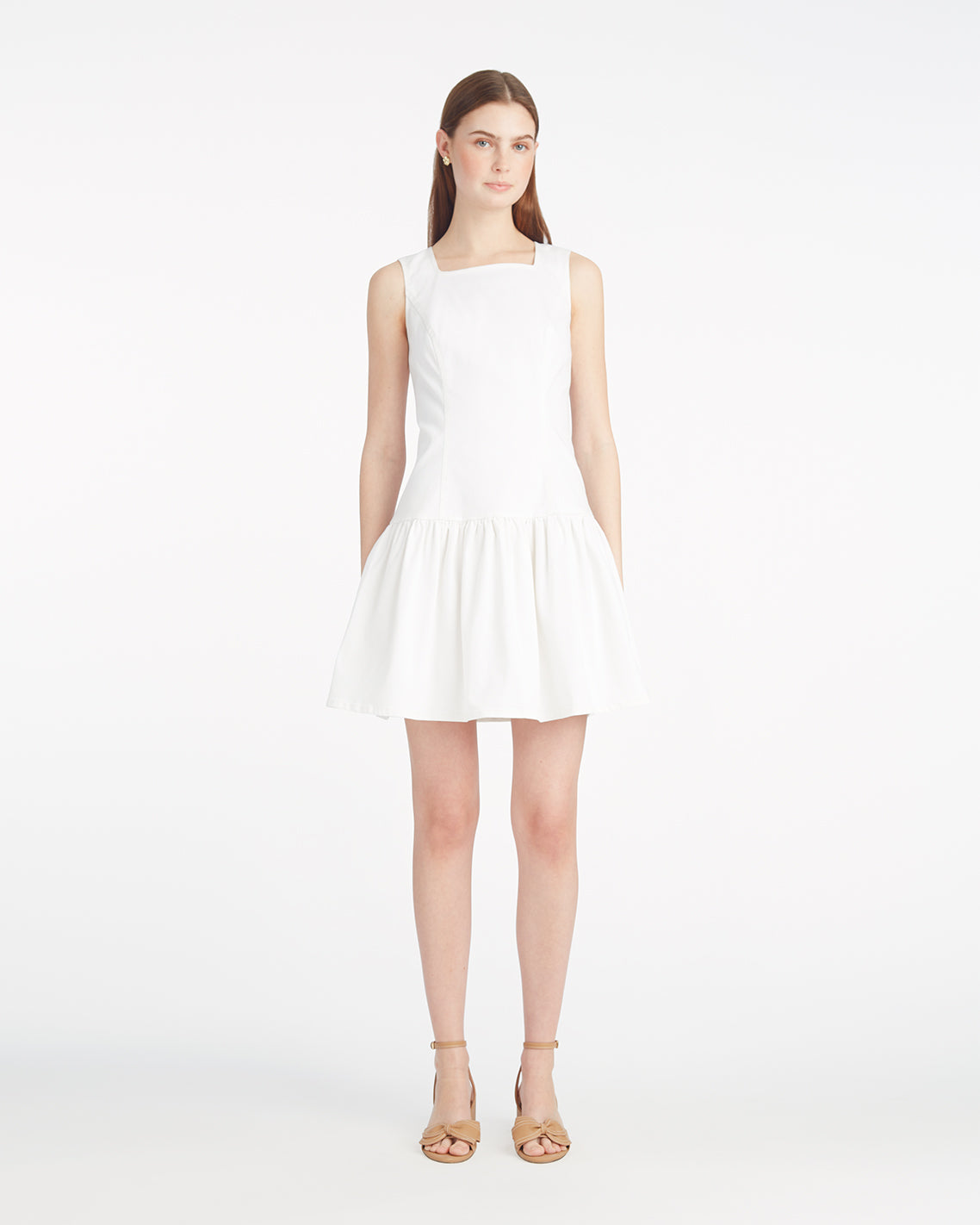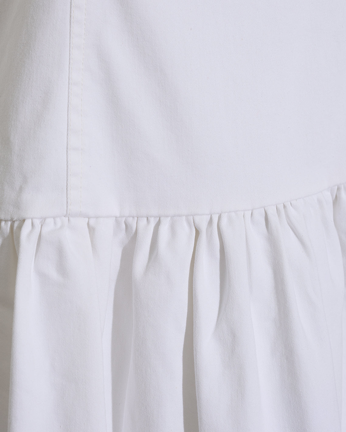 Flounce around. Our Colette Tailored Flounce Dress in Denim is cut from a white denim with the perfect amount of stretch sewn into a ladylike shape. Wear it for work, the weekend or whatever else you have planned, with heels, flip-flops or slip-on sneakers.