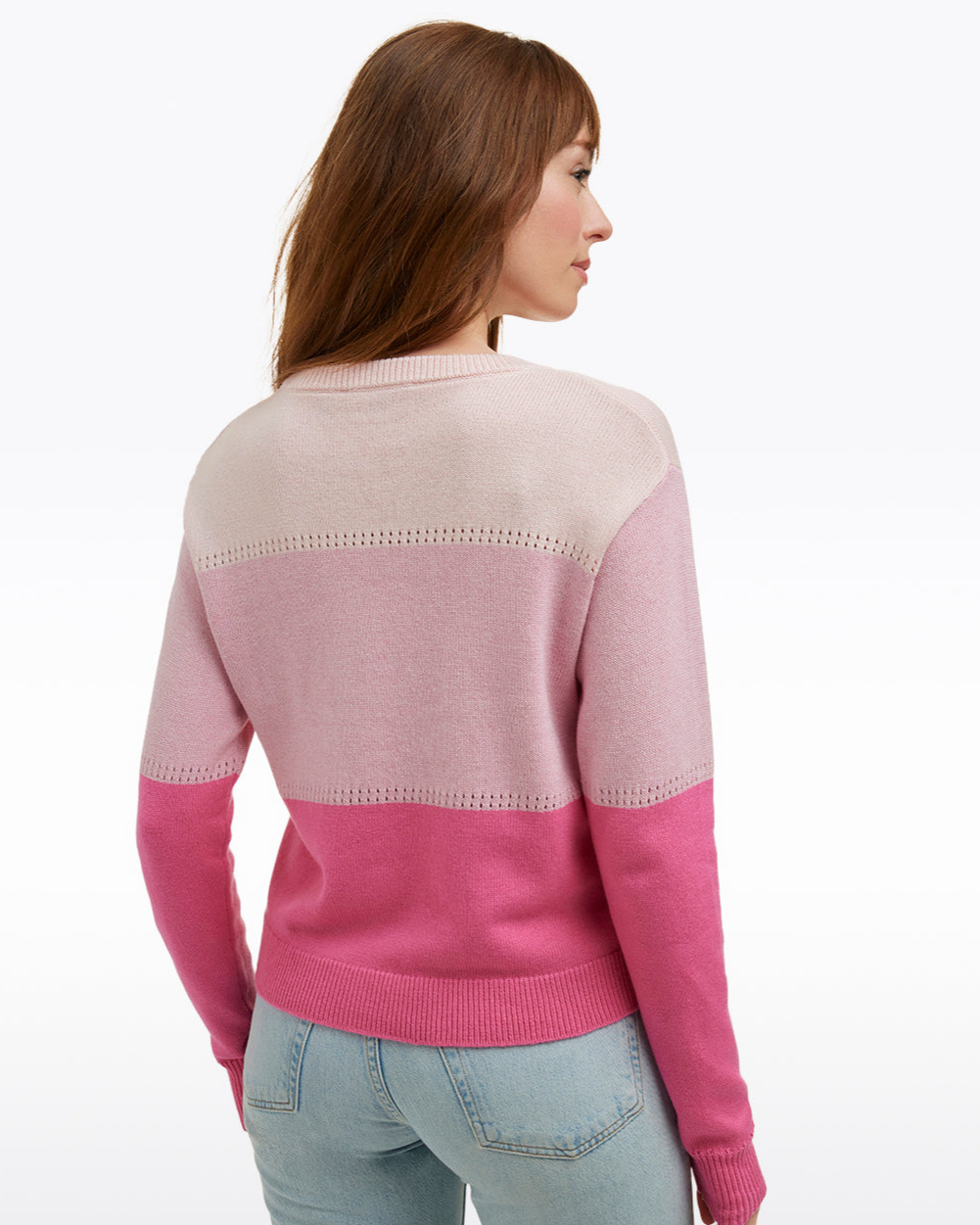 Think pink. Our Colorblock Crewneck Sweater is knit from soft blend of cotton, wool and cashmere, in a bright palette that’s perfect for Valentine’s Day (or any day).