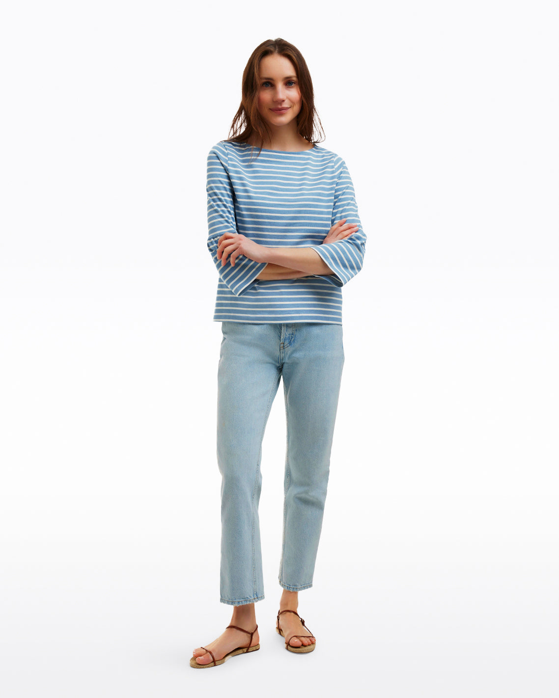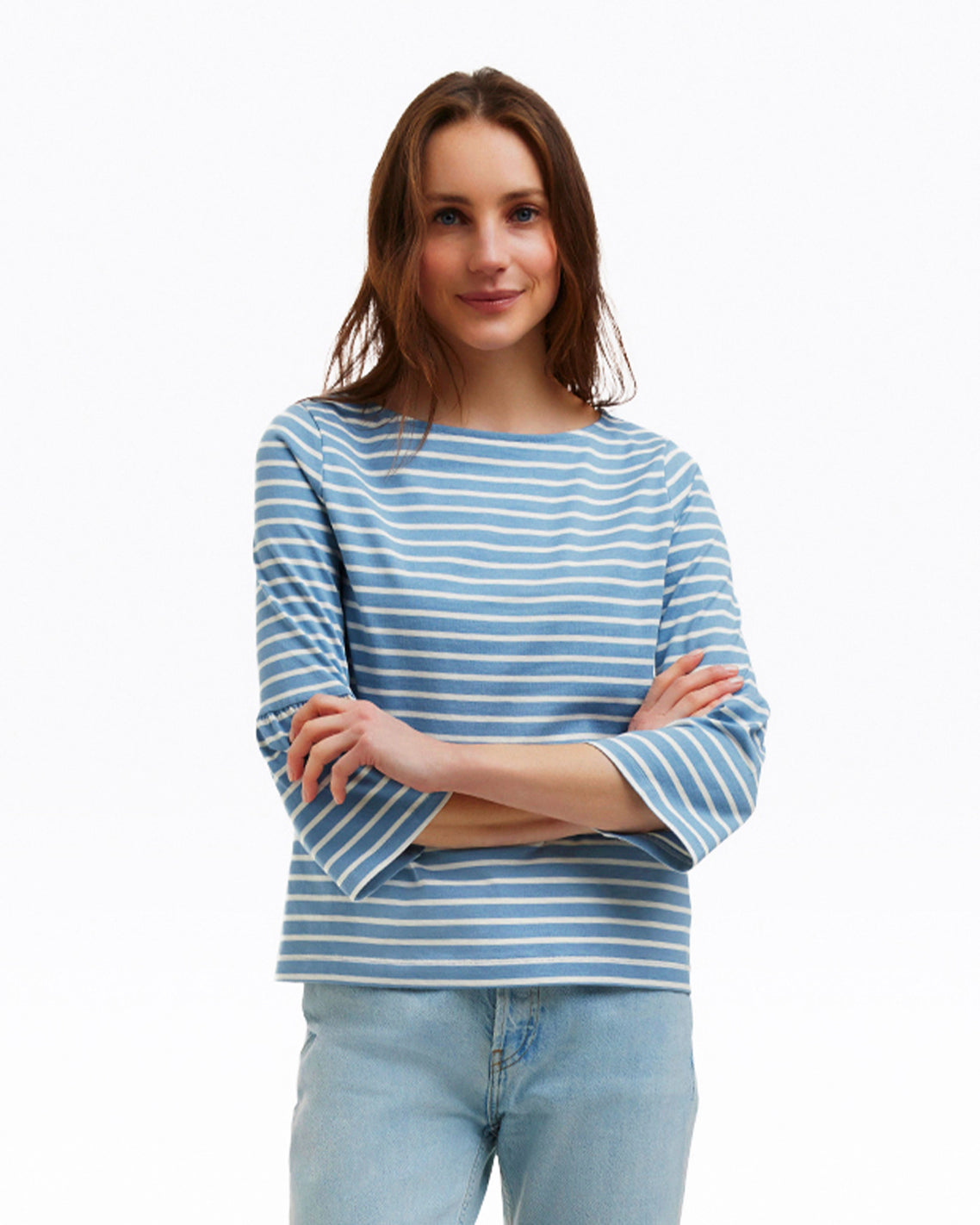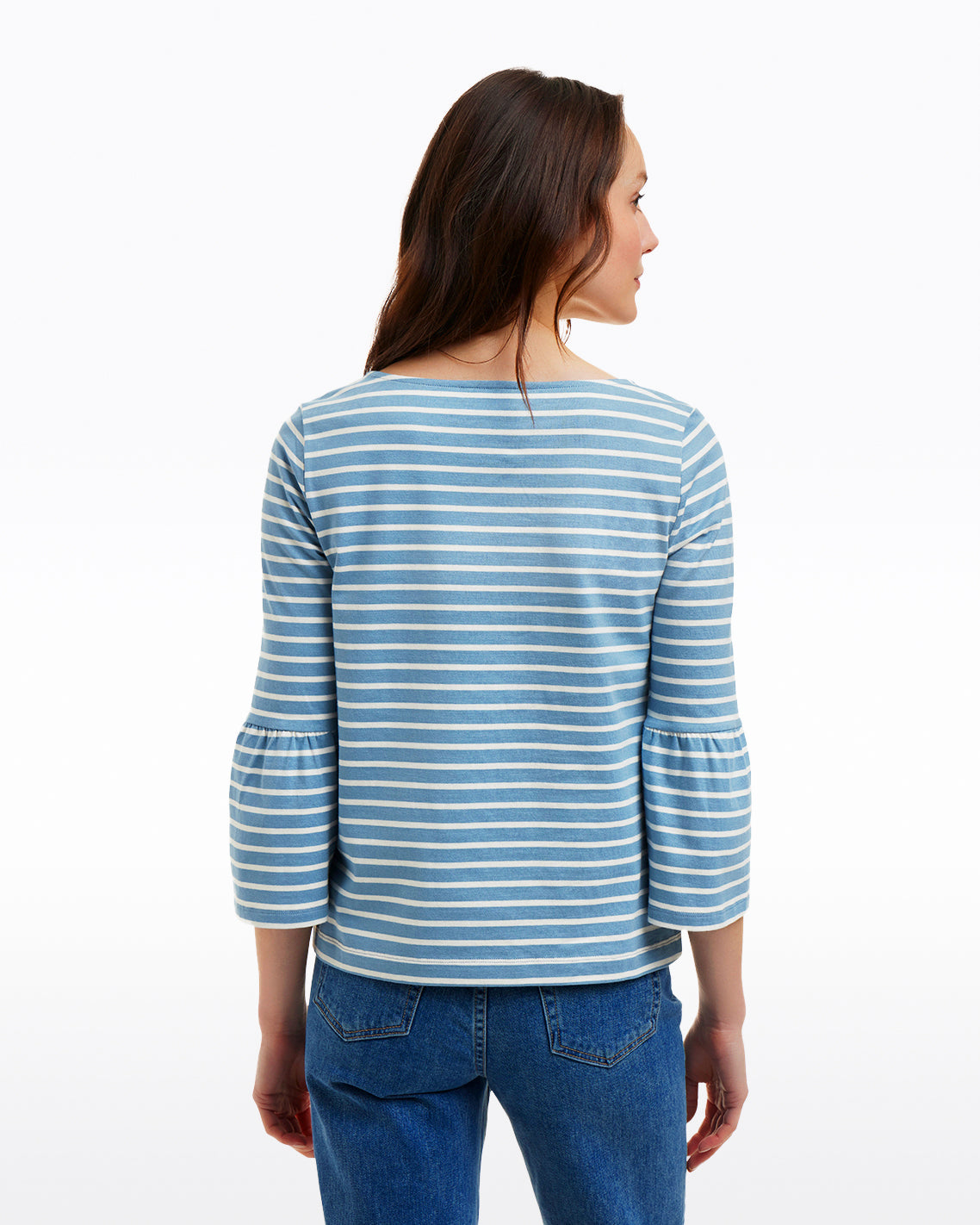 Draper James Women’s Corey Bell Sleeve Top In Blue Mariner Stripe | Blue Mariner Stripe