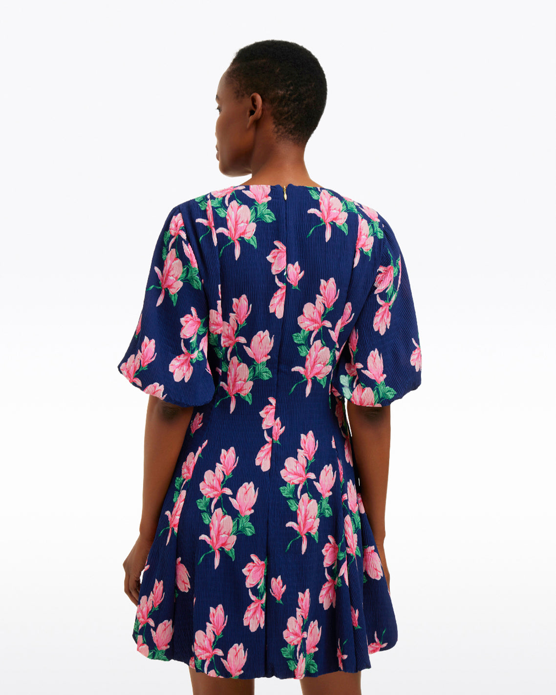 You’re blossoming. Or rather, you will be when you wear our Elaine V-Neck Mini Dress in Magnolia Buds. Constructed from a light crinkle chiffon printed with magnolias and finished with bubble sleeves, this is a perfect dress for spring parties, weddings and whatever else you might have planned.