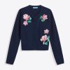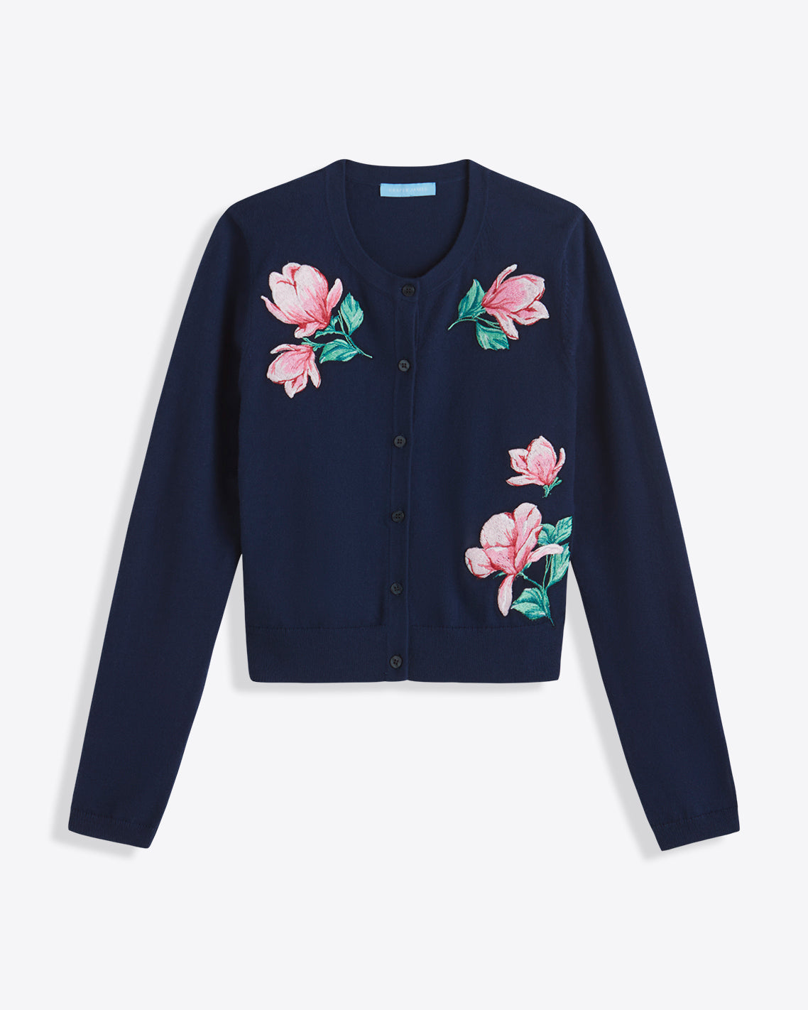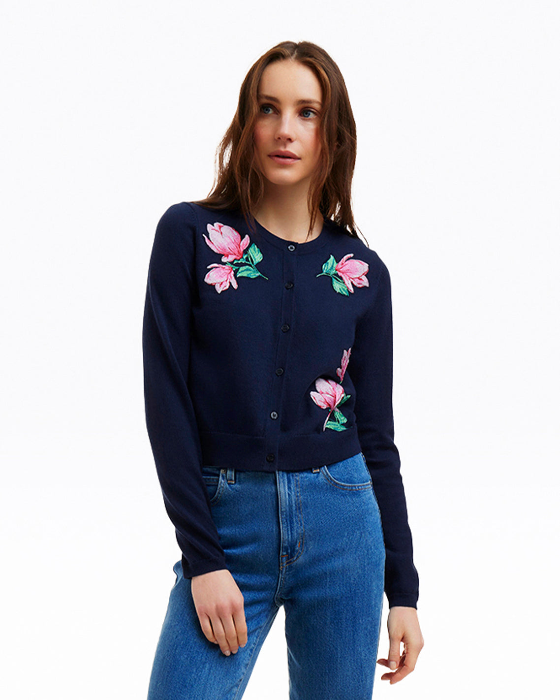 Spring flowers. Our Embroidered Crewneck Cardigan is knit from a soft cotton-wool blend and decorated with embroidered blossoms on the front. The overall look is uplifting but still polished, and a perfect match for your favorite jeans or pants.
