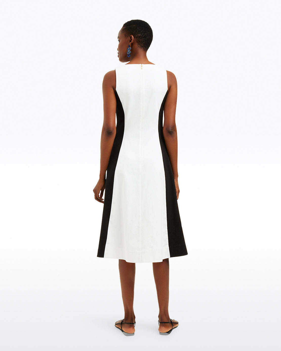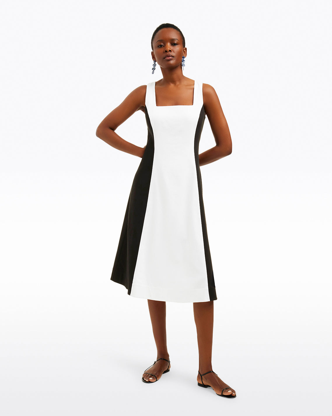 What’s black and white and chic all over? You, when you wear our Genevieve Midi Dress. Cut from cotton with the perfect amount of stretch, this bicolor piece is perfect for work and the weekend. Just add heels!
