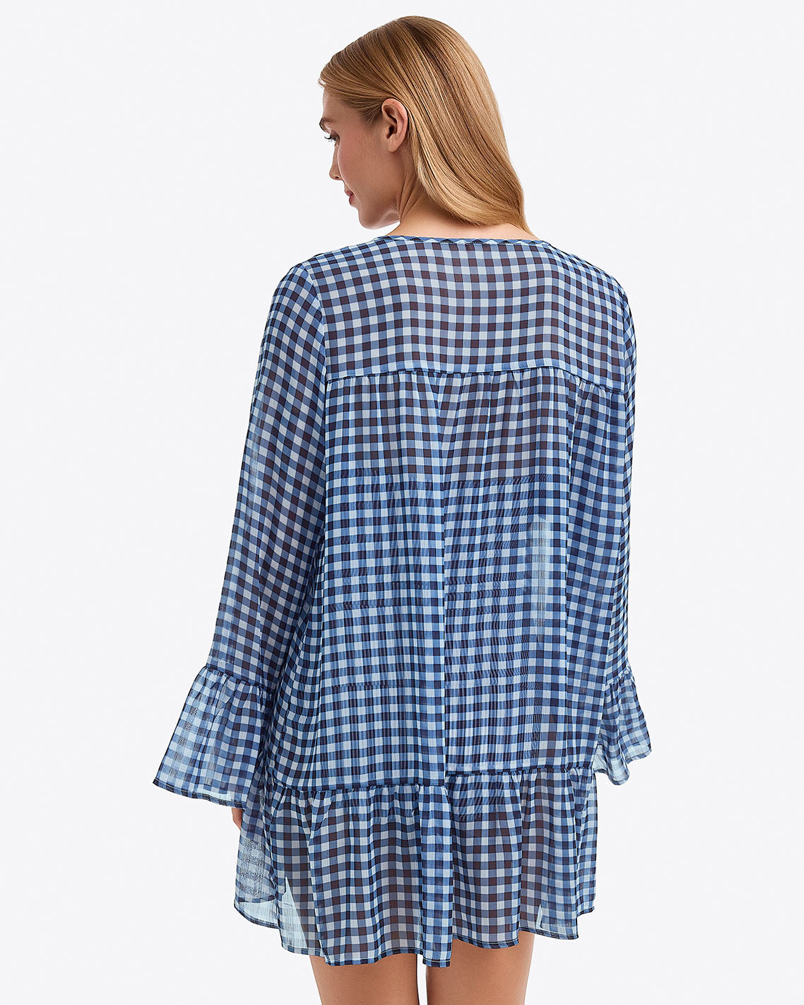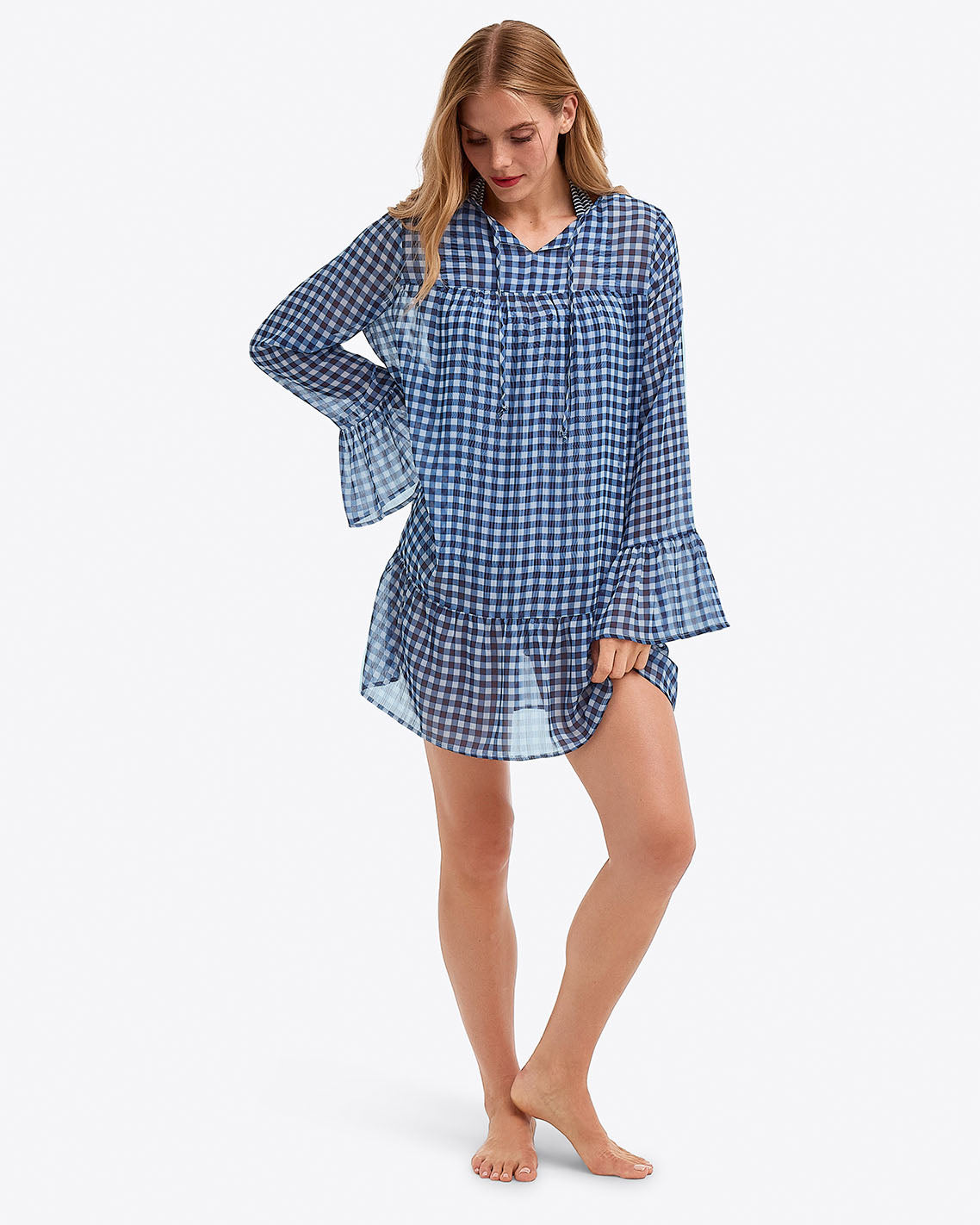Checks please. Our Gingham Coverup, finished with a keyhole neckline and bell sleeves, is the perfect easygoing dress to throw over your favorite bikini or one-piece.