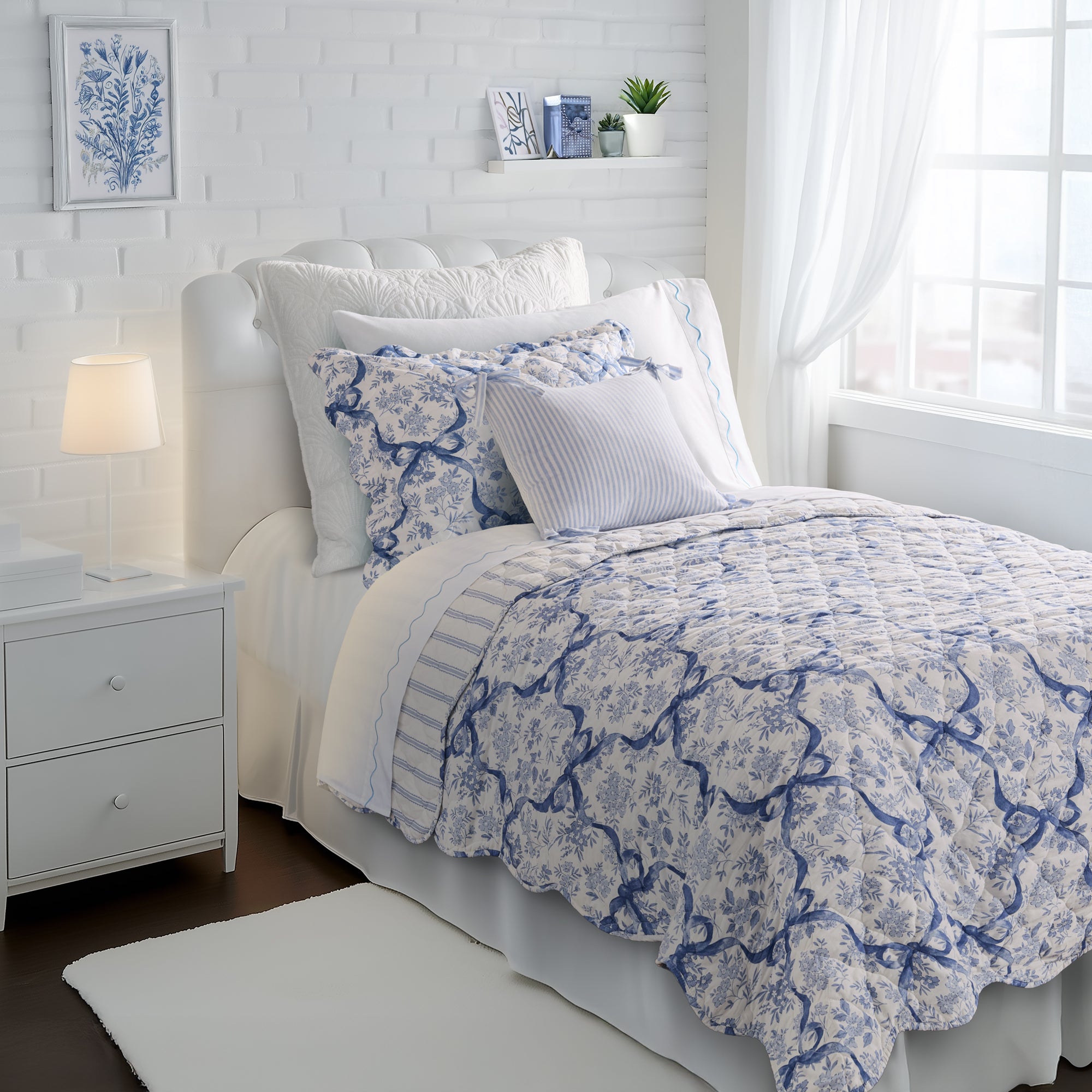 Whether you’re decorating your first dorm room or refreshing a cozy bedroom at home, this vibrant quilt set blends bold color with sweet, feminine details.