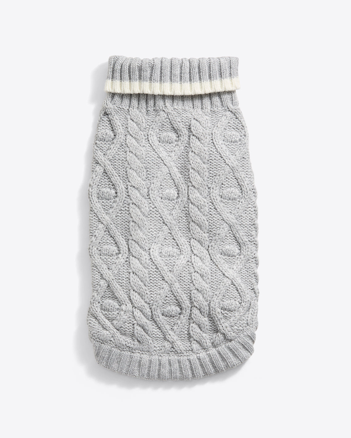 For the dogs: Our new collection of pet gear allows your pup to look almost as stylish as you do. Case in point, our cable knit Dog Sweater, finished with a cozy mockneck. Totes fetching!