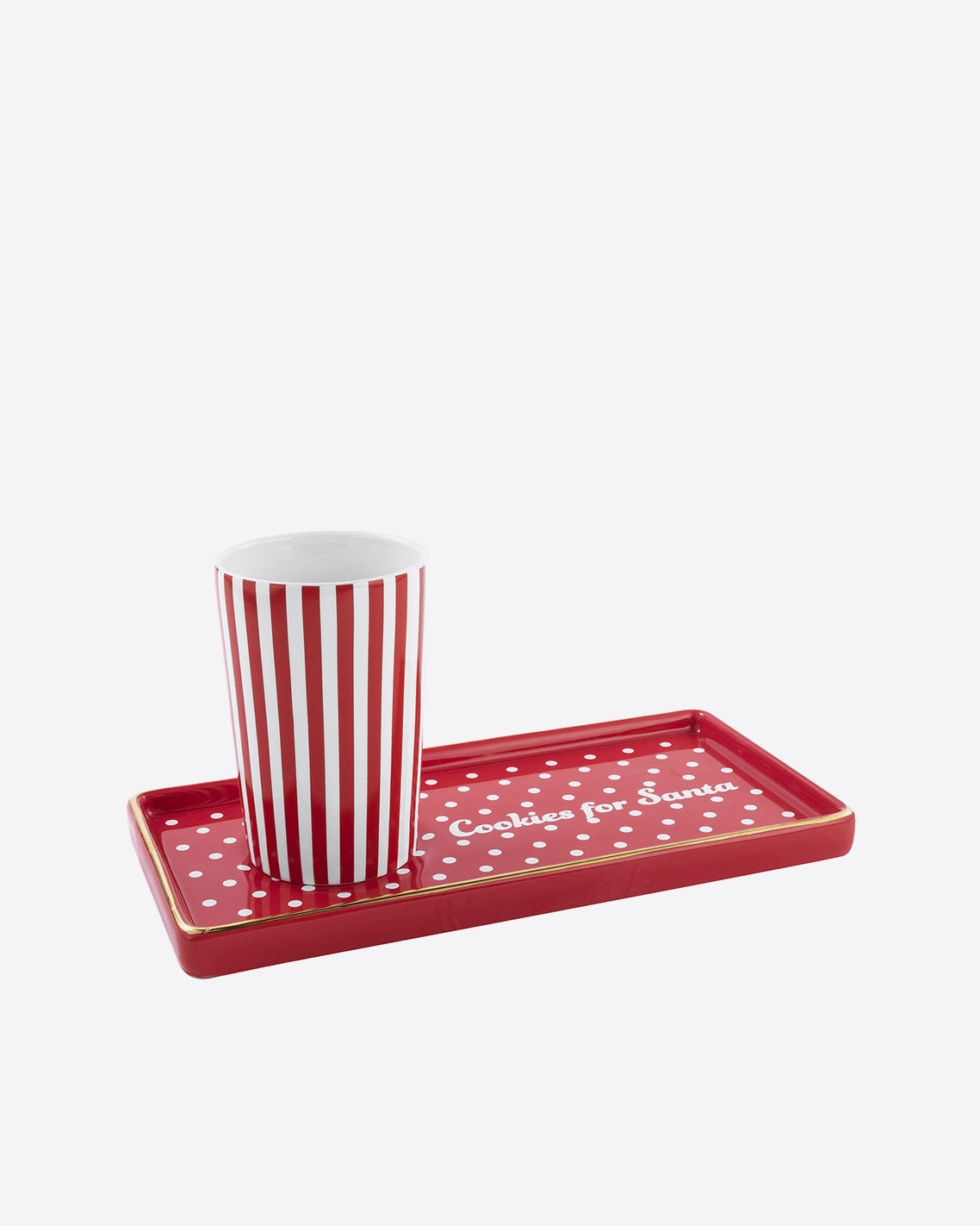 Your Christmas Eve tradition just got an adorable update! Your little ones will love setting out milk and cookies for Santa with this ceramic tray and cup set. The tray features gold trim and a “Cookie for Santa” quote and the cup has a fun candy cane striped design. This set is packaged in a cute box for easy gifting so all that’s missing is a tasty treat and a letter to Jolly Old St. Nick.