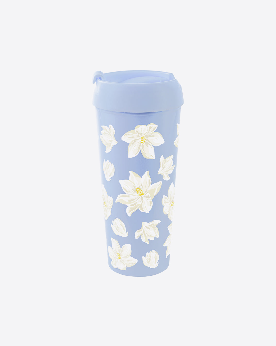 Take your caffeine fix with you on the go, in style, with this magnolia-printed thermal mug! Your drink will stay the perfect temperature all day long and the spill-resistant lid will make this your new favorite travel companion.