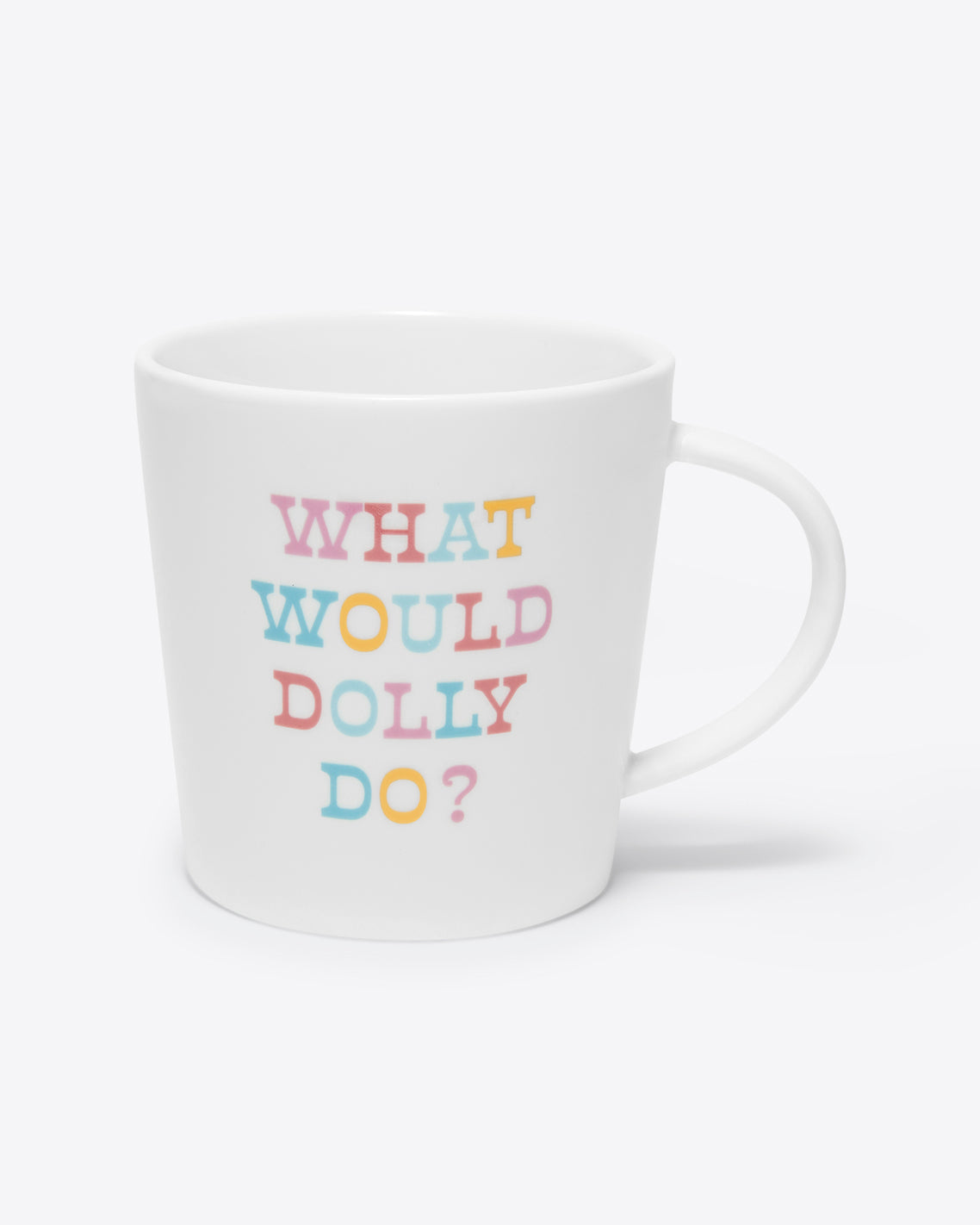 Words to live by. Upgrade your typical caffeine routine with our ceramic coffee mug, which bears a message that will remind you to welcome each new day with the same optimism and style as the inimitable Dolly Parton.
