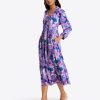 Purple reign. Our Katie Midi Dress is cut from a bold floral fabric, so it’s a great way to make an impact. Wear it to work with a cardigan and boots, then switch to high heels for an evening out!