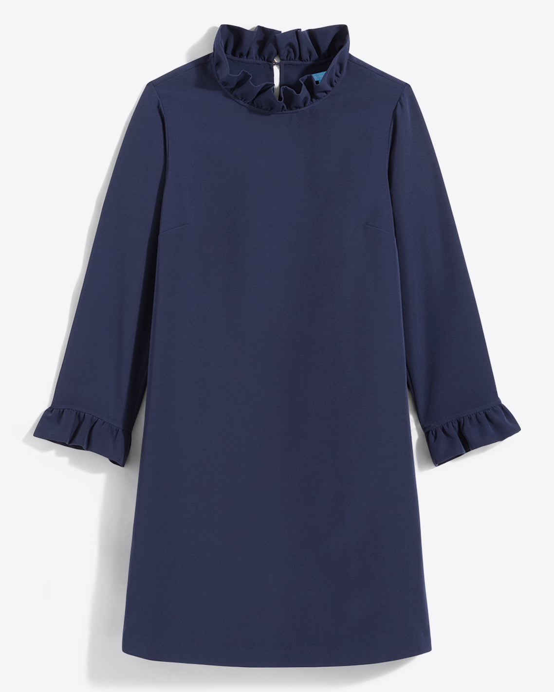 Give ’em short shift. Our Lindsay Shift Mini Dress is cut from a heavy crepe with the perfect amount of stretch and finished with a smocked mock turtleneck and cuffs. Wear it with clogs and a pair of dangly earrings to work, dinners out or whatever else you have planned.