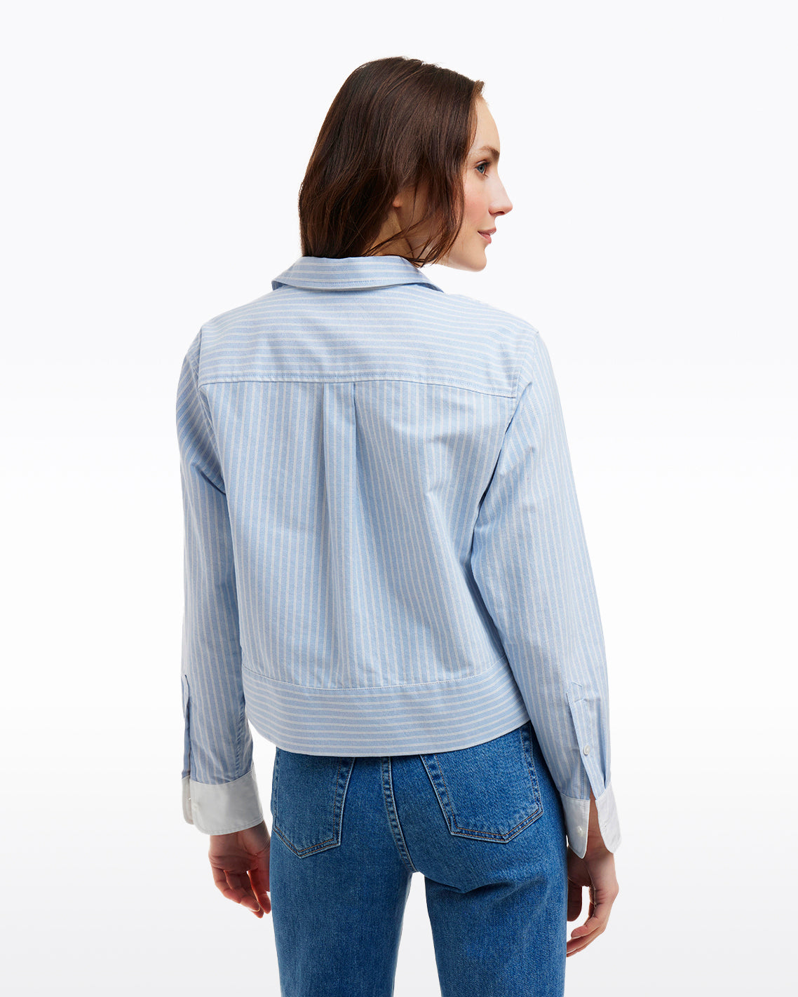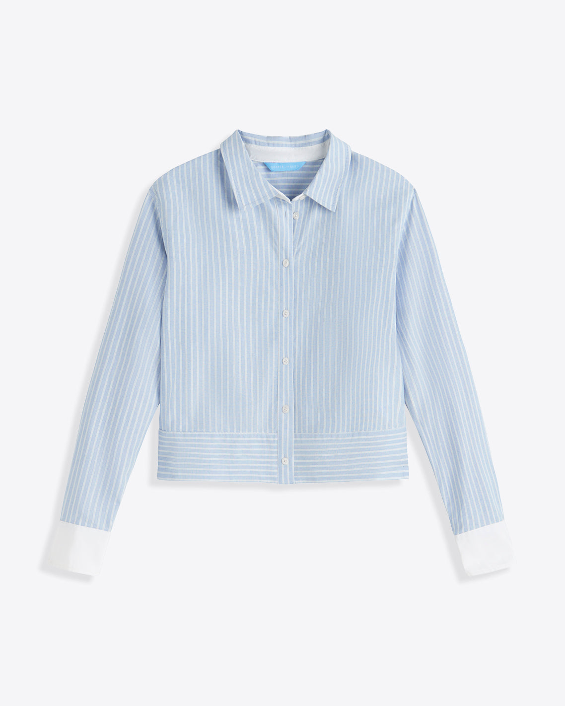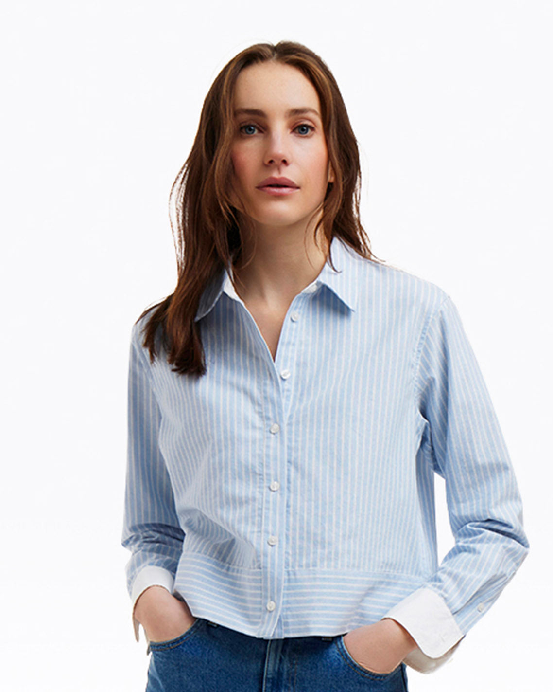 Draper James Women’s Long Sleeve Cropped Button Down In Oxford Shirting | Oxford Shirting