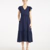 Ruffles up. Our Meg Midi Dress in drapey crepe is finished with flattering details like a V-shaped neckline and smocked waist. It’s a great party dress — just add heels! — but will also work for daytime with flats and a jean jacket.