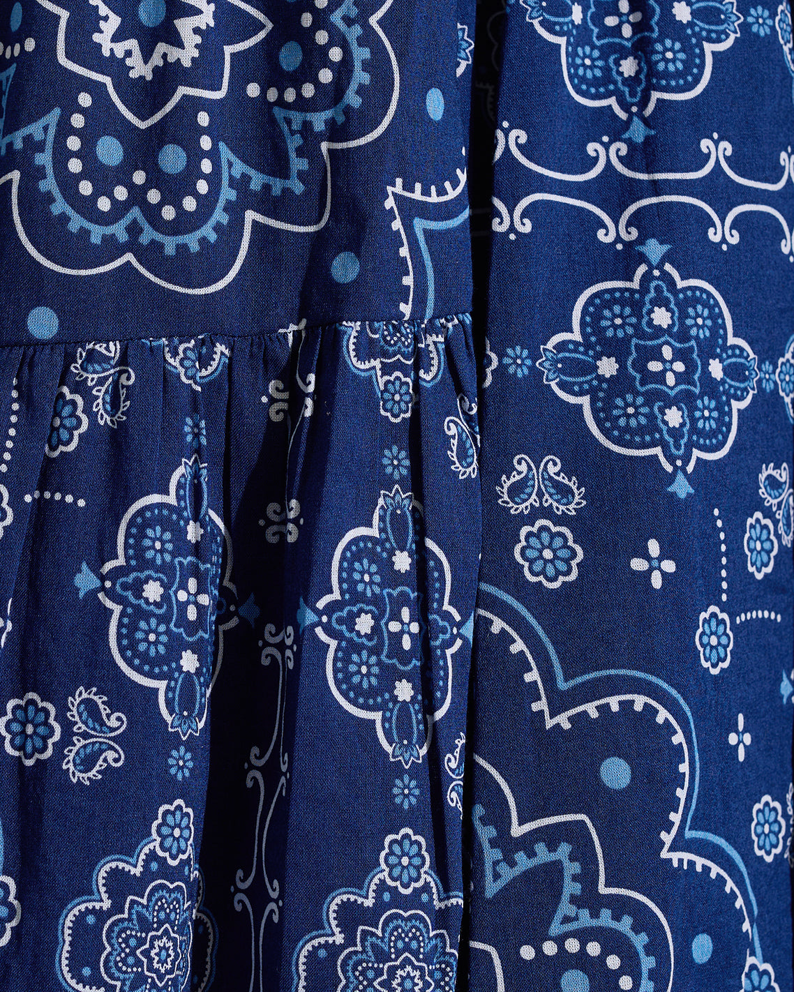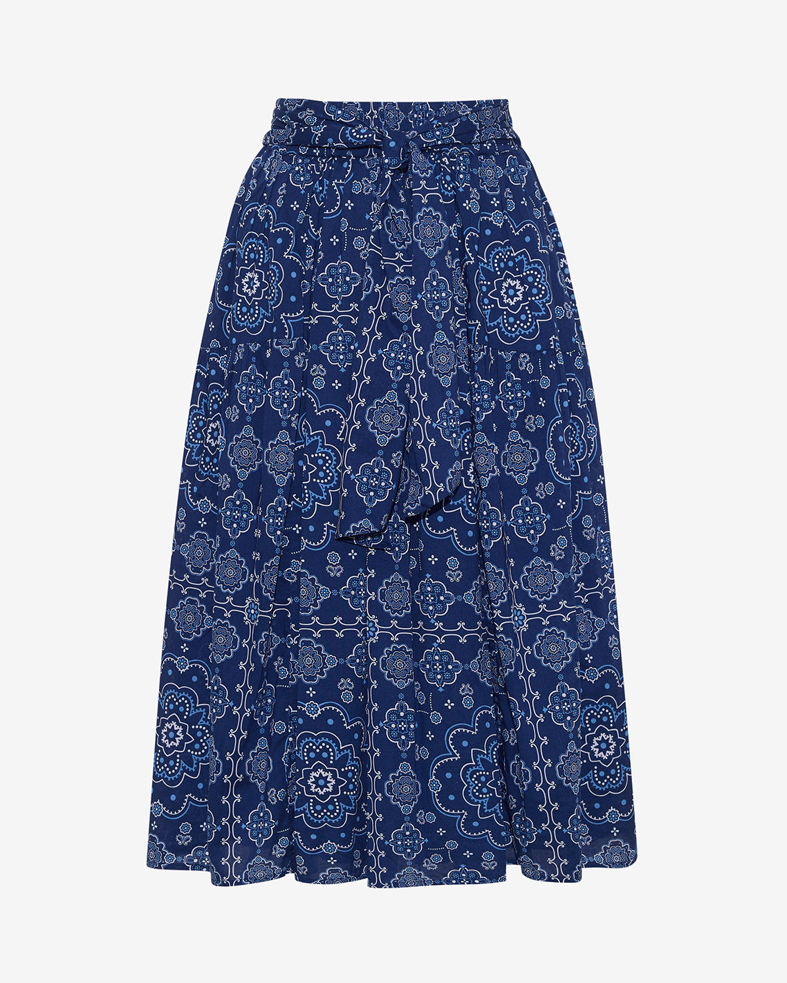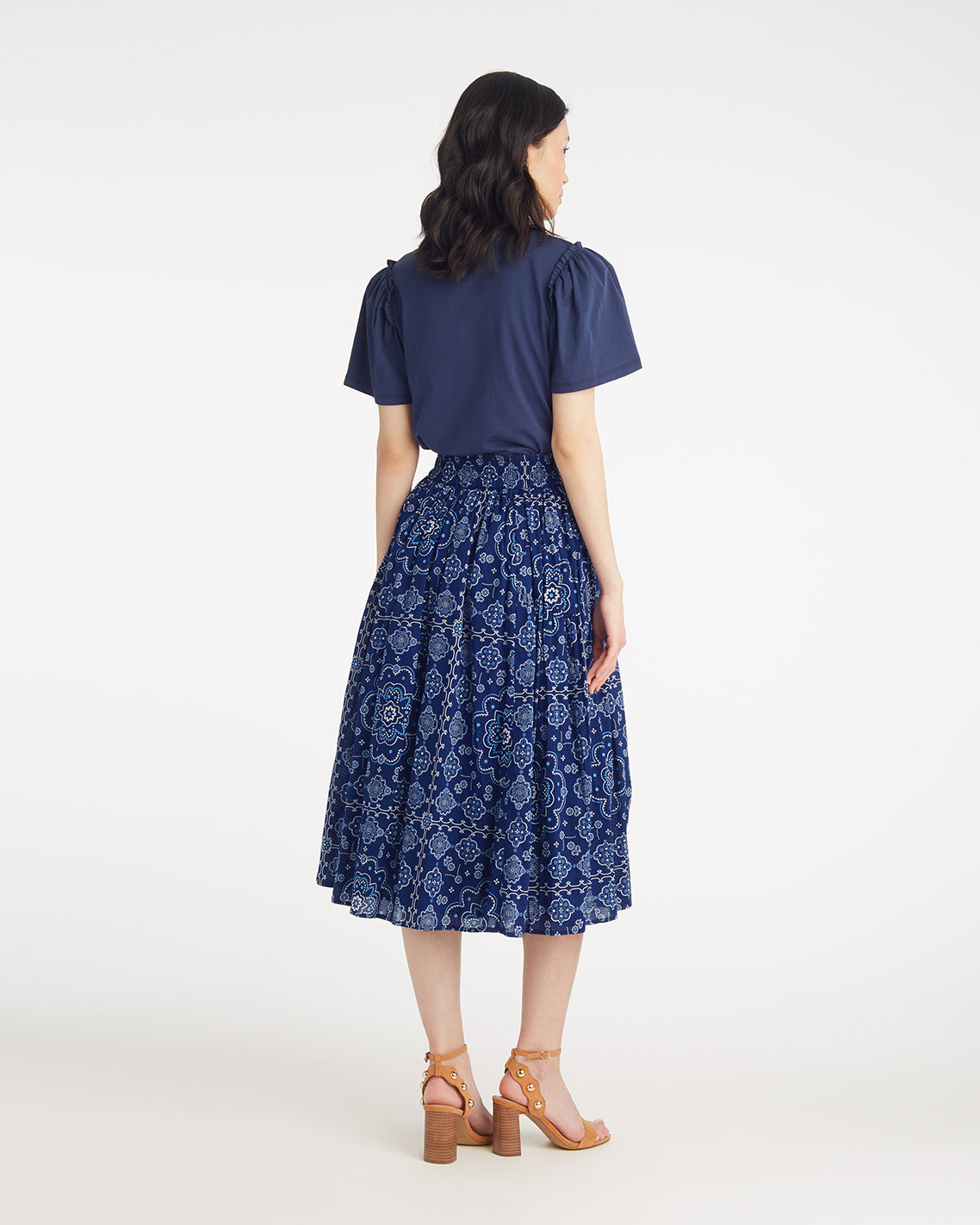 Skirt the issue. Our Midi Skirt in Bandana Blue is made from 100% cotton printed with a bandana-inspired motif and finished with a comfortable elasticated waist. Lightweight, ladylike, and oh-so-easy to wear, it’s a perfect warm-weather partner for everything from button-ups to tank tops to T-shirts.