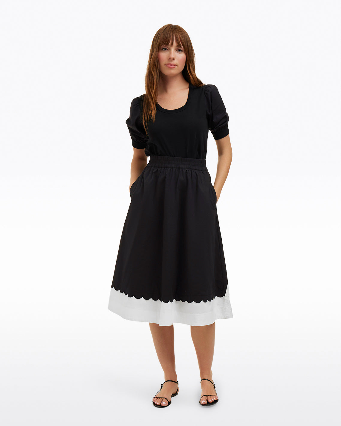 What’s black and white and chic all over? You, when you wear our Midi Skirt. Cut from cotton with the perfect amount of stretch, this bicolor piece is perfect for work and the weekend. Wear it with your favorite tank, T-shirt or button-up and finish with a pair of kitten heels!