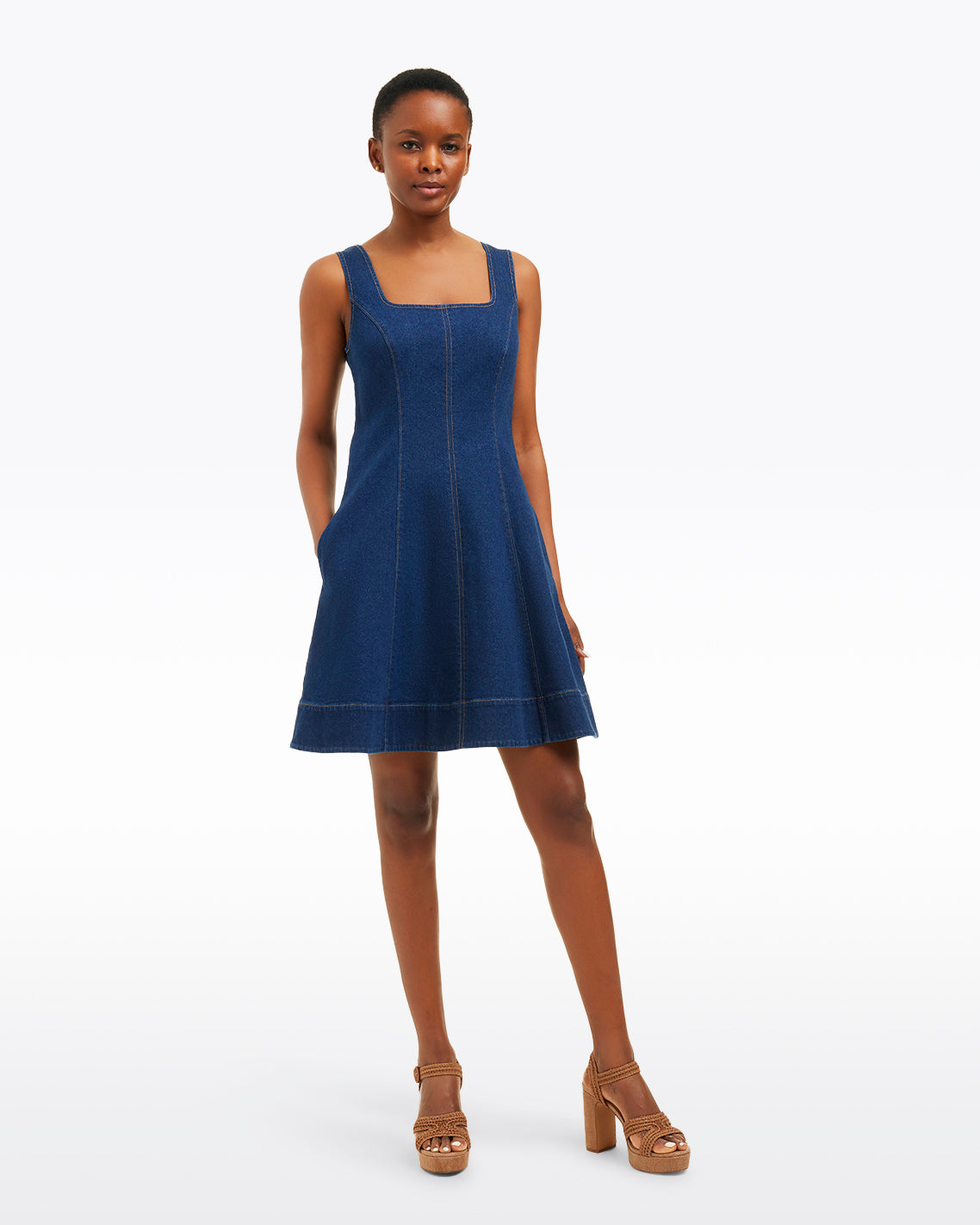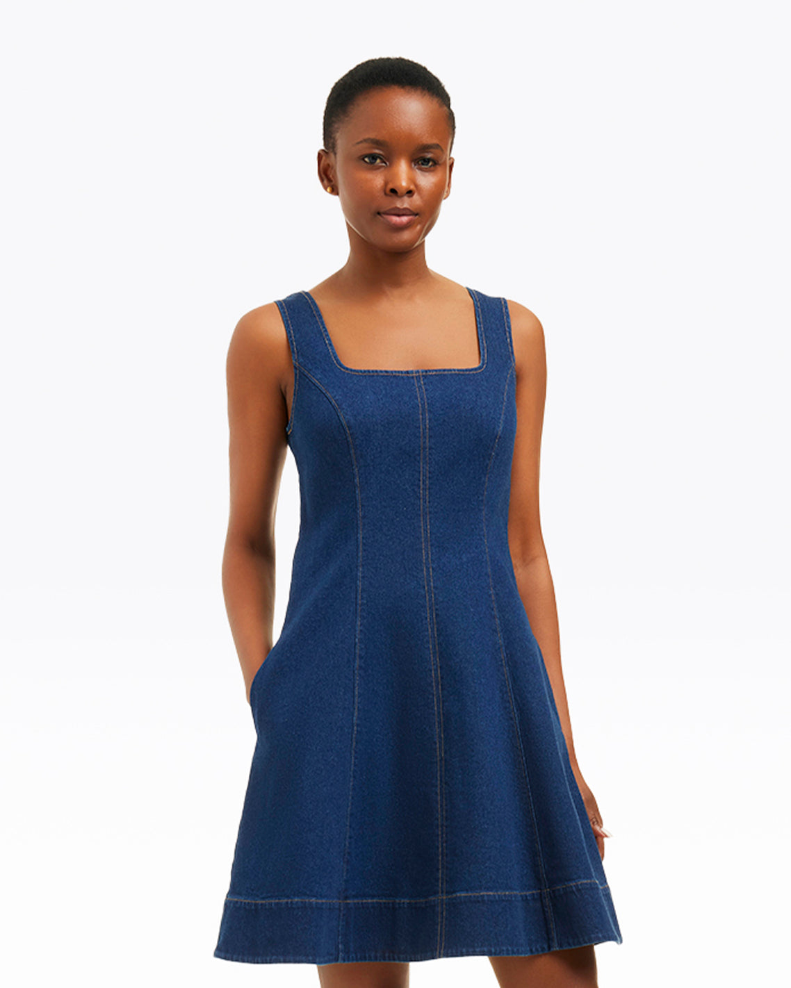 Feeling blue? Our Millie Scoop Neck Mini Dress in Denim is just the thing. Cut from a dark wash denim with the perfect amount of stretch, the seamed silhouette offers both structure and ease. Wear it for work, the weekend or whatever else you have planned.