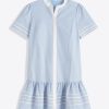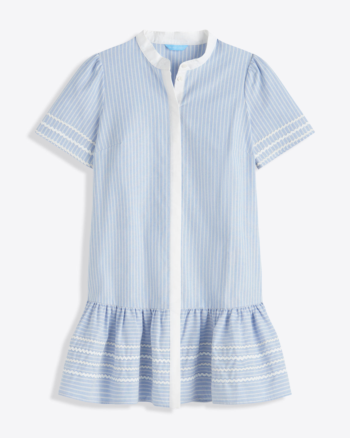Show your stripes. Our Molly Mini Dress in Oxford Shirting is cut from crisp 100% cotton and finished with a mandarin-style collar, center-front buttons and a ruffled skirt. Wear it to work with heels or a weekend brunch with sandals. Either way you’ll feel as cool as you look.