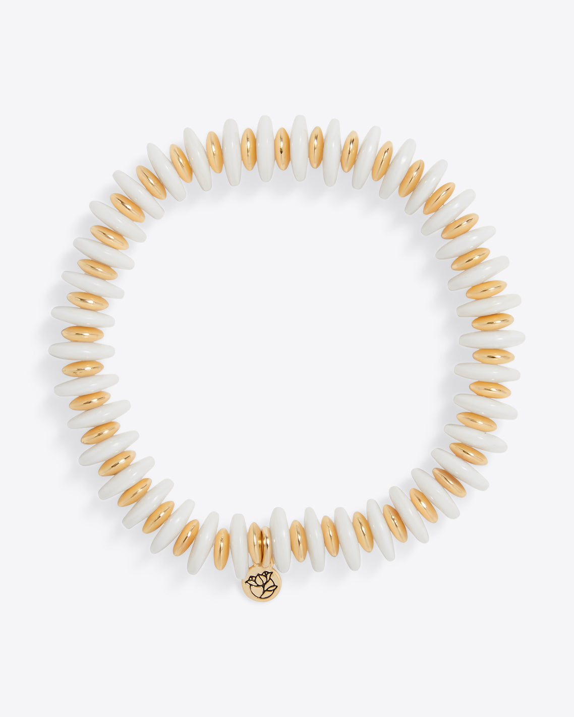 Clutch these pearls. Our Mother of Pearl Stretch Bracelet is made with oodles of the lustrous stones. Wear it alone or as part of a stack with everything from T-shirts to dresses.