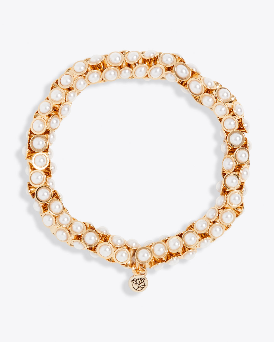 Clutch these pearls. Our Pearl Stretch Bracelet is made from brass plated with 10K gold and (oodles of) glass pearls. Wear it alone or as part of a stack with everything from T-shirts to dresses.