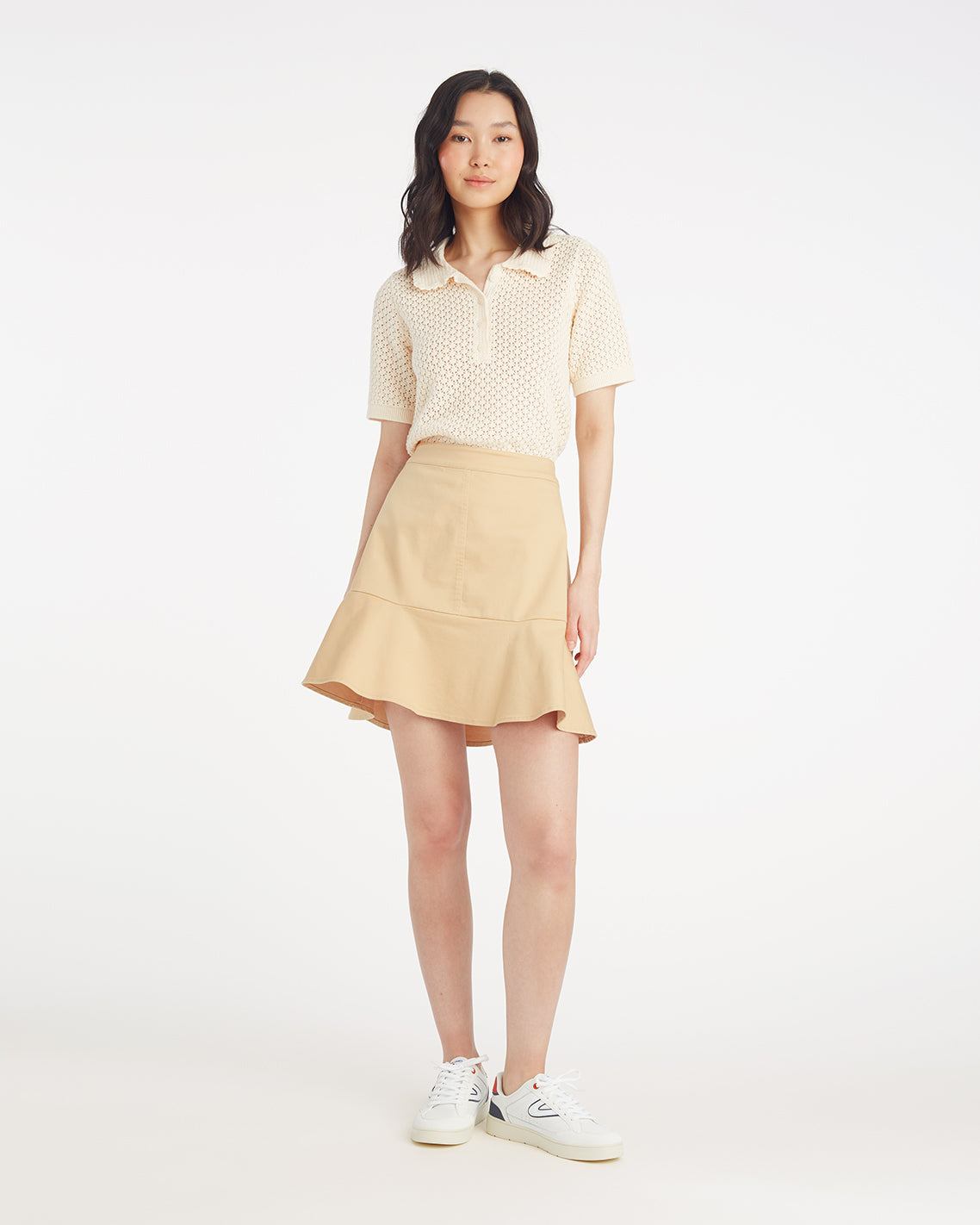 Skirt the issue. Cut from stretch cotton twill and finished with a flounce hem, our Peplum Mini Skirt in Croissant is a dressed-up alternative to your favorite khaki shorts. Wear it with a T-shirt and sandals now, and switch to a sweater and boots for a perfect fall fit.