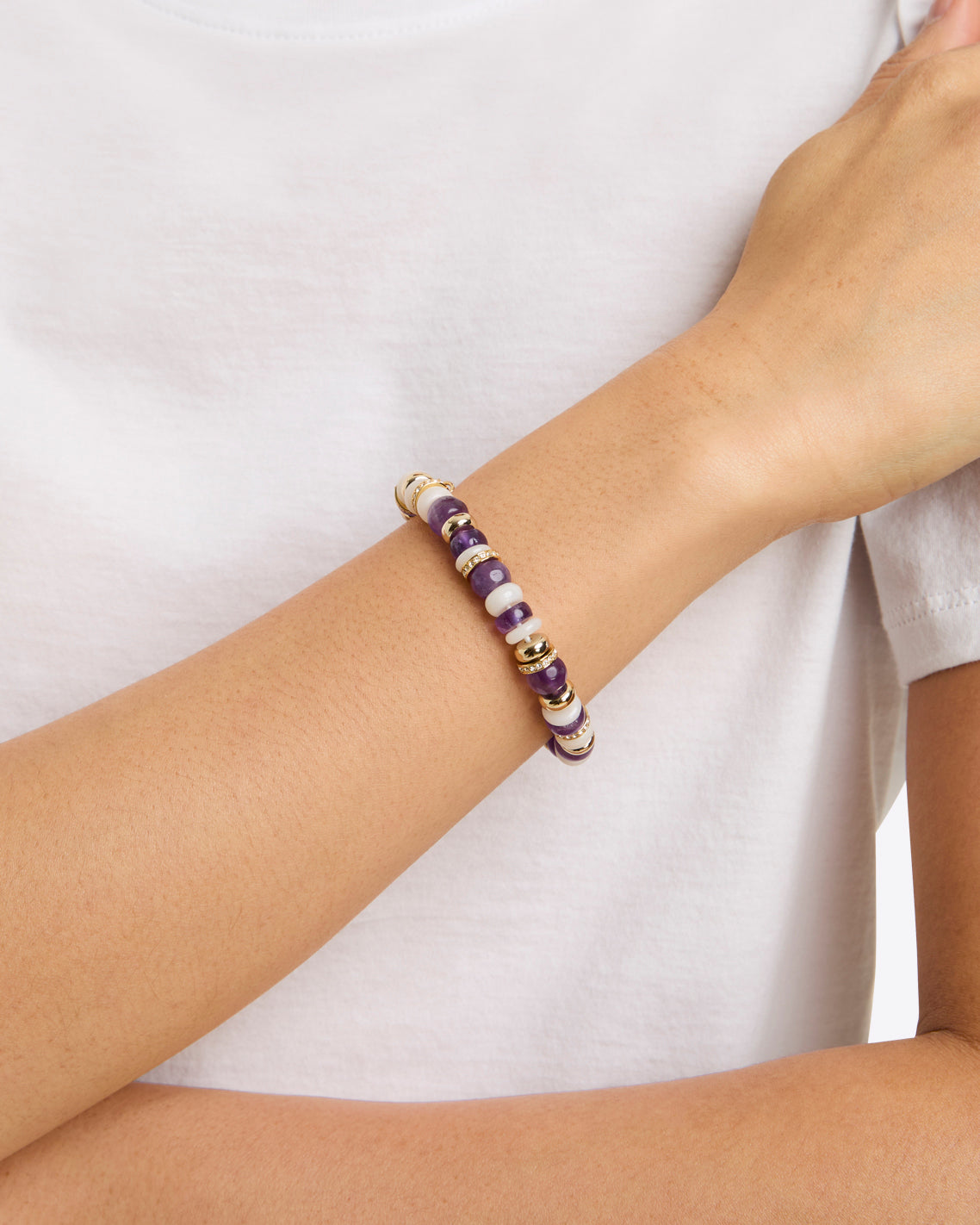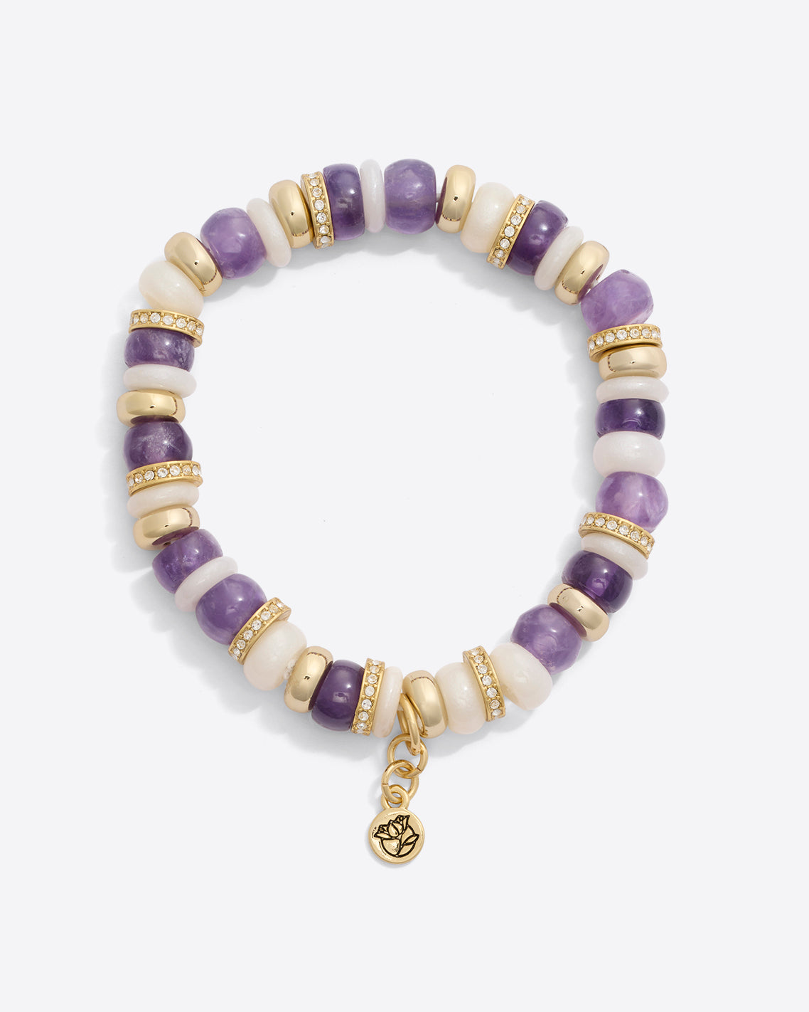 Friendship bracelets FTW. The Petal Pearl Mixed Stone Stretch Bracelet is an elevated take on your favorite friendship bracelet, made with a combination of glass pearls and epoxy beads along a durable brass chain. Snag one for yourself and one for your BFF!