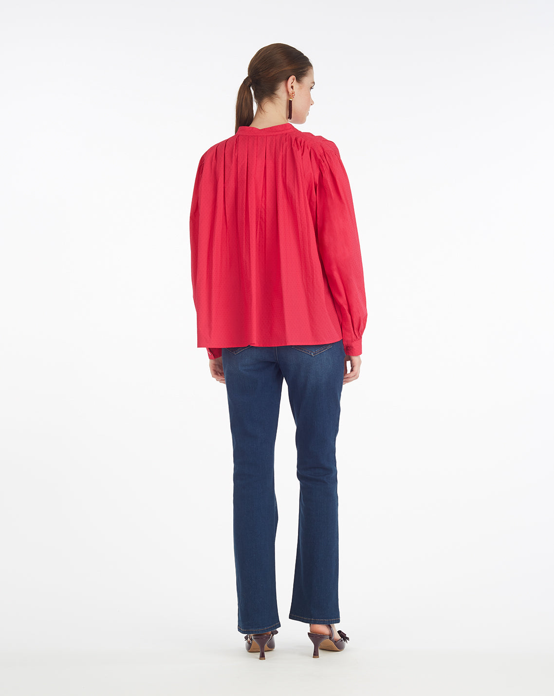 Our Pleated Button Down Blouse in Cotton Dobby brings effortless sophistication to your everyday wardrobe. Designed with soft gathers at the shoulders and back for gentle volume, it features a relaxed, swingy silhouette that’s easy to style and flattering on all. The split neckline and button placket add a tailored touch, while the vibrant hue makes it a standout with denim, trousers, or tucked into a skirt. It’s that throw-on-and-go piece you’ll keep reaching for—season after season.