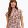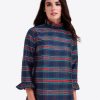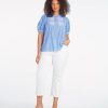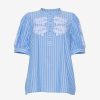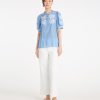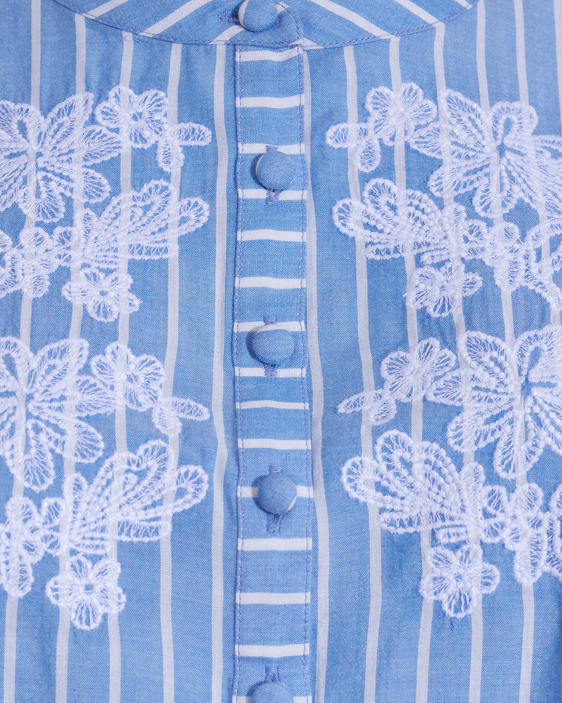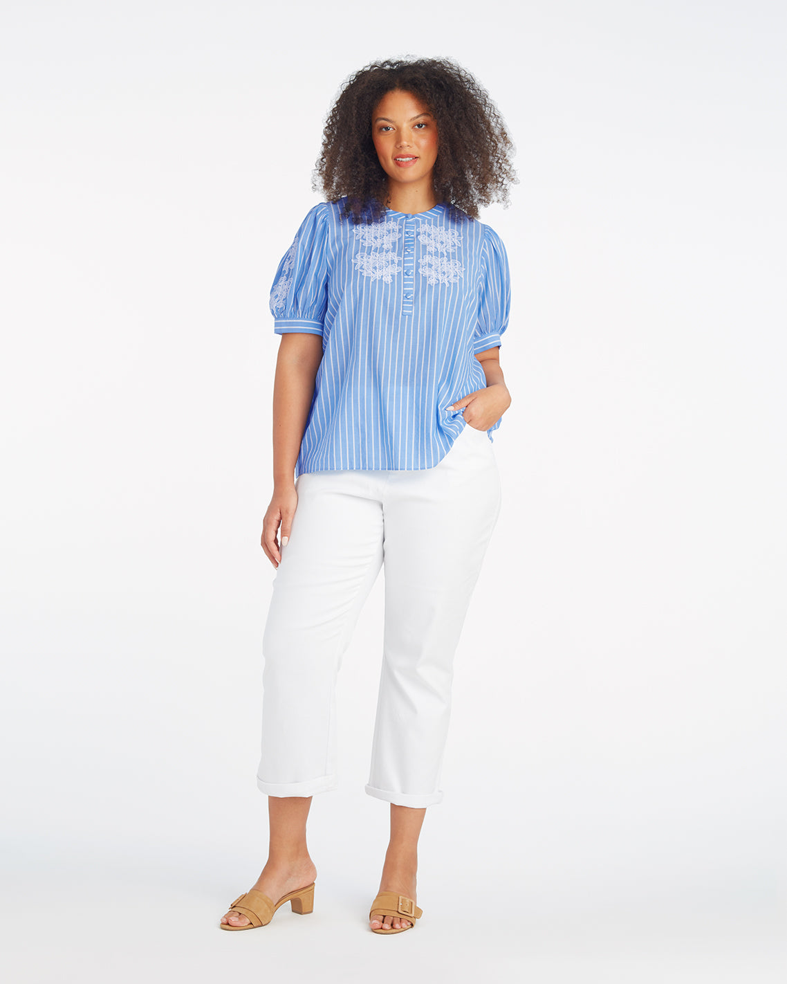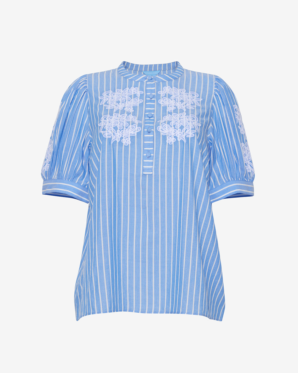 Draper James Women’s Puff Sleeve Top With Floral Embroidery | Blue Stripe Floral Embroidery
