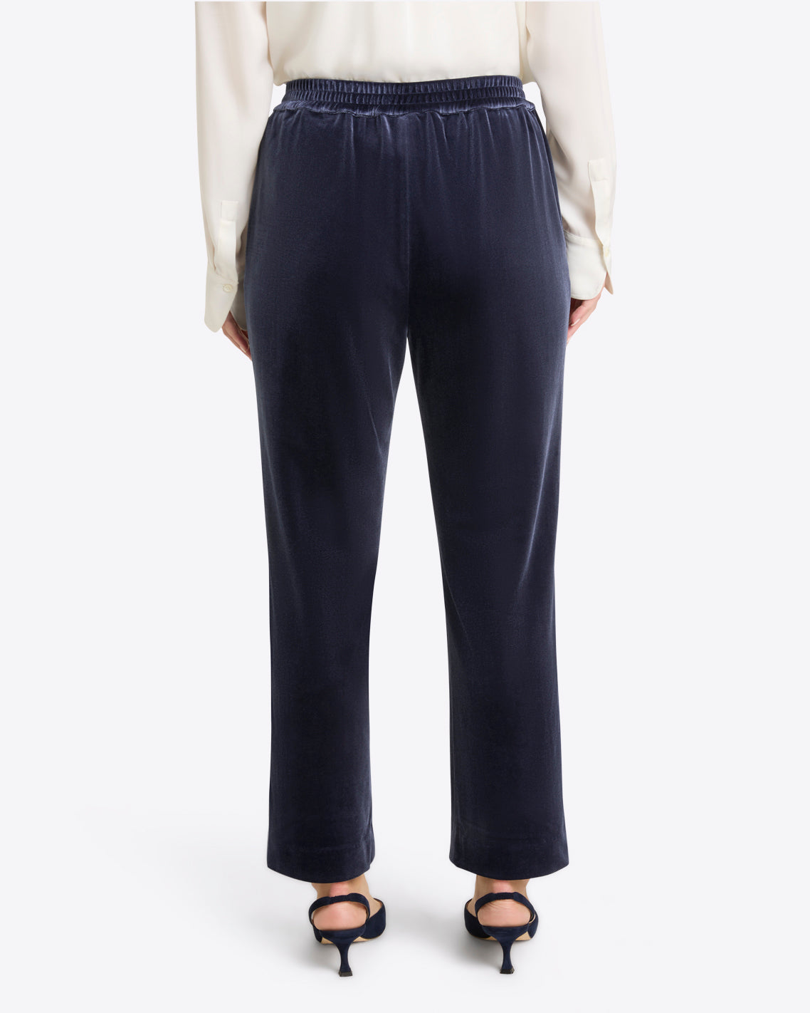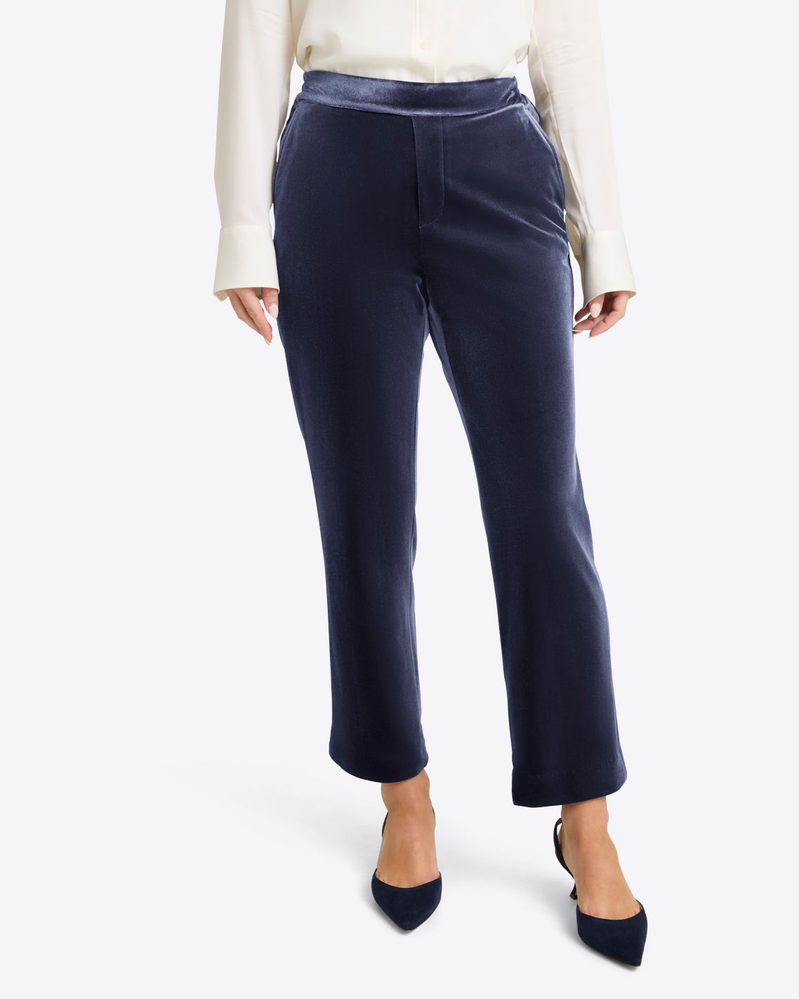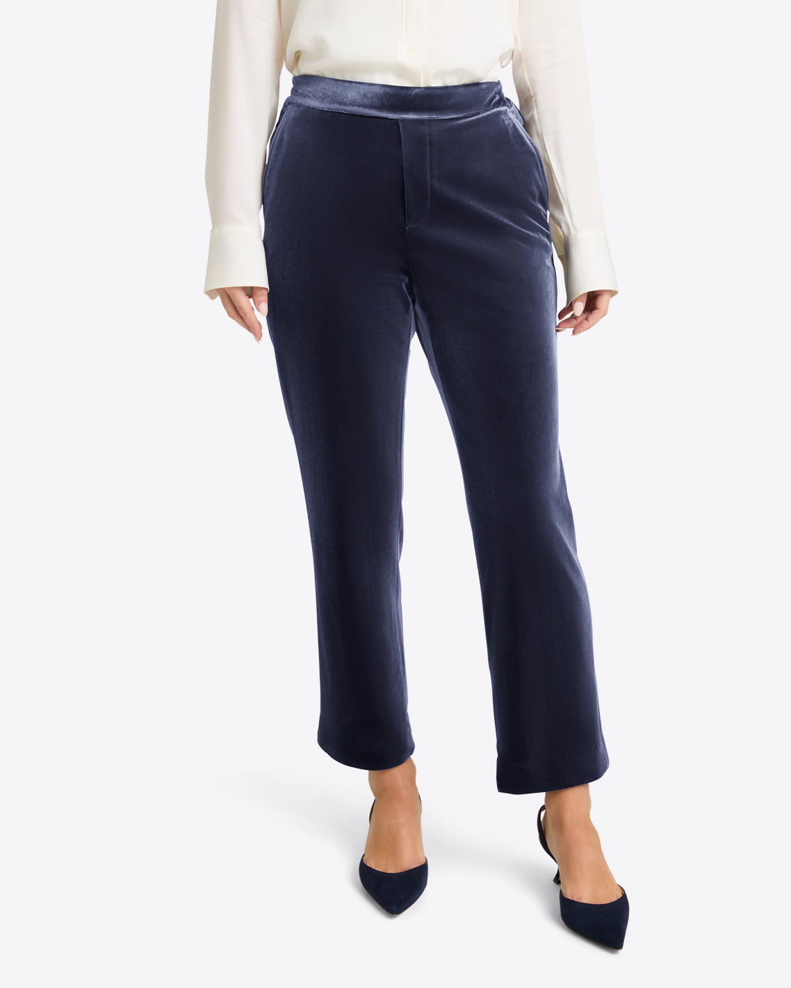 Blue mood. Our Pull On Pants in Velvet look as polished as your favorite trousers but, thanks to the stretch fabric and elastic waistband, feel as good as your favorite sweatpants! Wear them with our matching Blazer in Velvet for a very cool New Year’s Eve look.