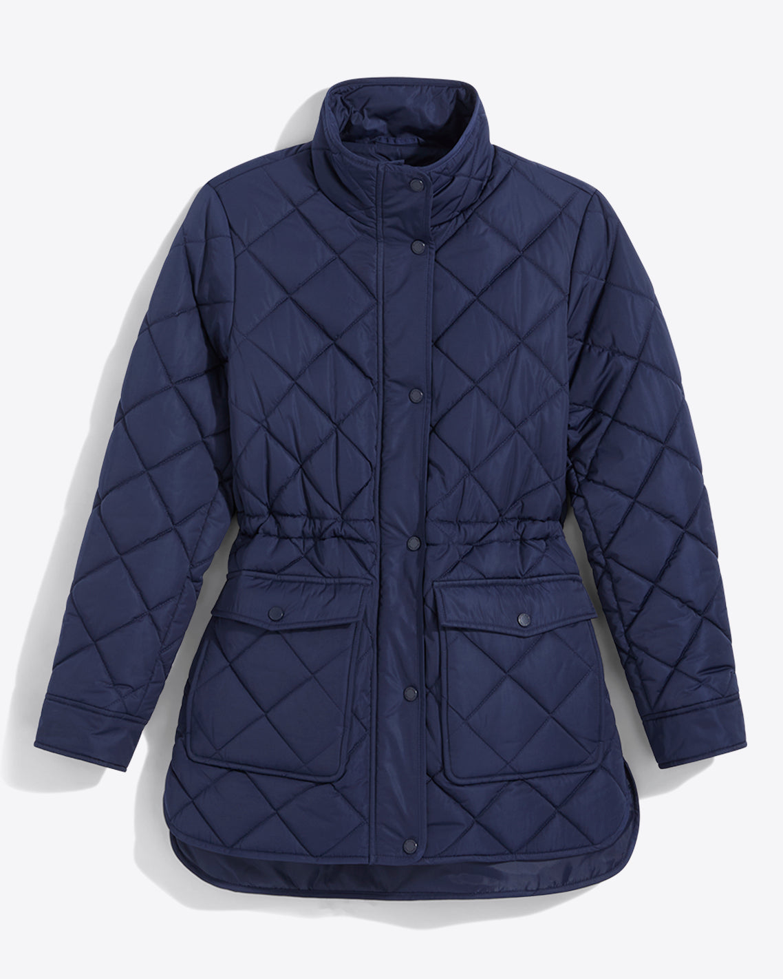Warm it up. Our take on the Quilted Coat features a longer silhouette and a stand-up collar. It’s cozy, of course, but also surprisingly stylish, and will look good with all of your favorite pants, skirts, jeans and even dresses.