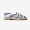 - Easy to wear slip-on shoe, in nautical stripe fabric with a raw edge finish, classic jute sole edge, rounded toe, and comfort sock padding.