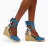 True blue. Our Espadrille Wedges are a great warm-weather heel, adding altitude (four inches worth) without sacrificing comfort. The wrap-around ankle strap makes them feel extra stable, and the look pairs perfectly with all of your favorite skirts and dresses.