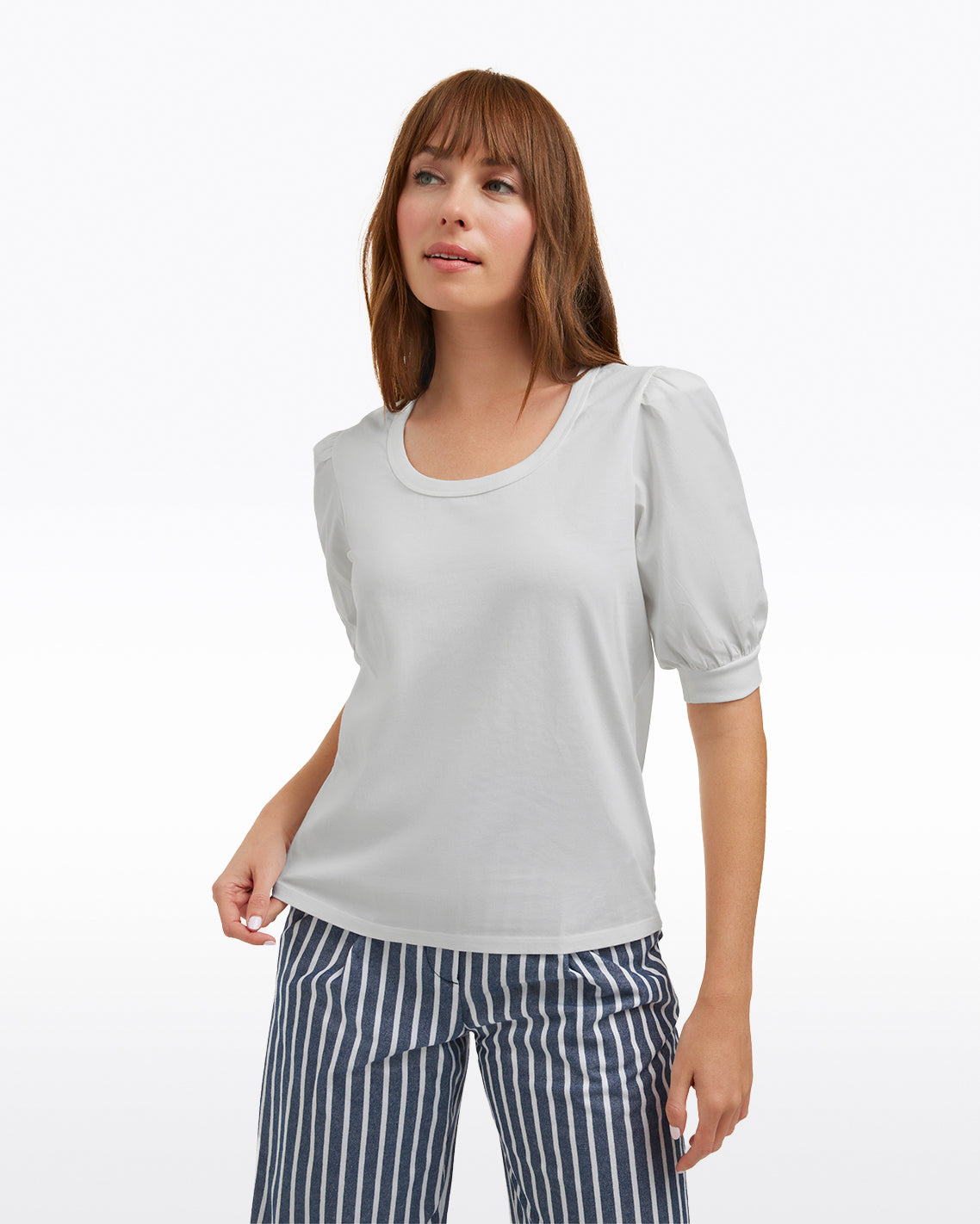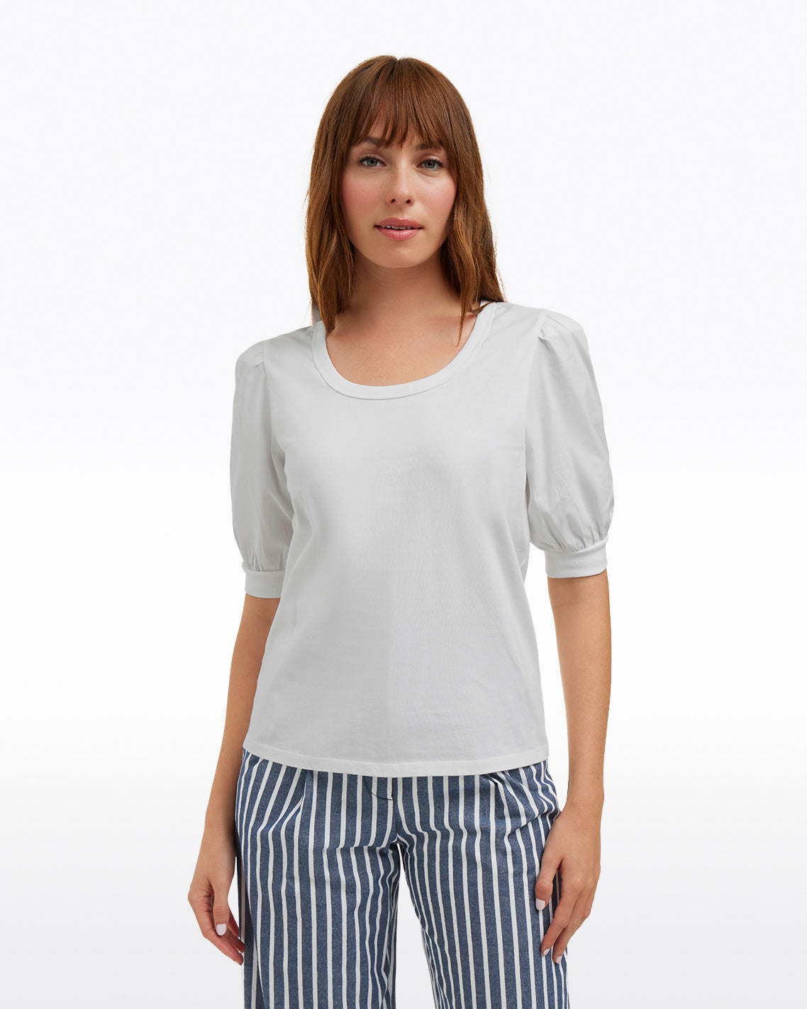 Mix things up. Our Short Sleeve Mixed Media Top is made from 100% cotton jersey and poplin and finished with a flattering scooped neckline. The result? A shirt that’s as easy to wear as your favorite tee, but significantly more polished.