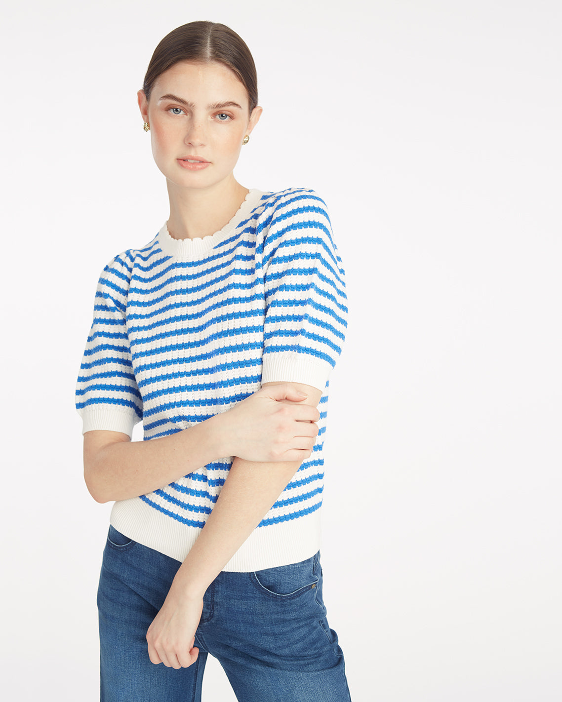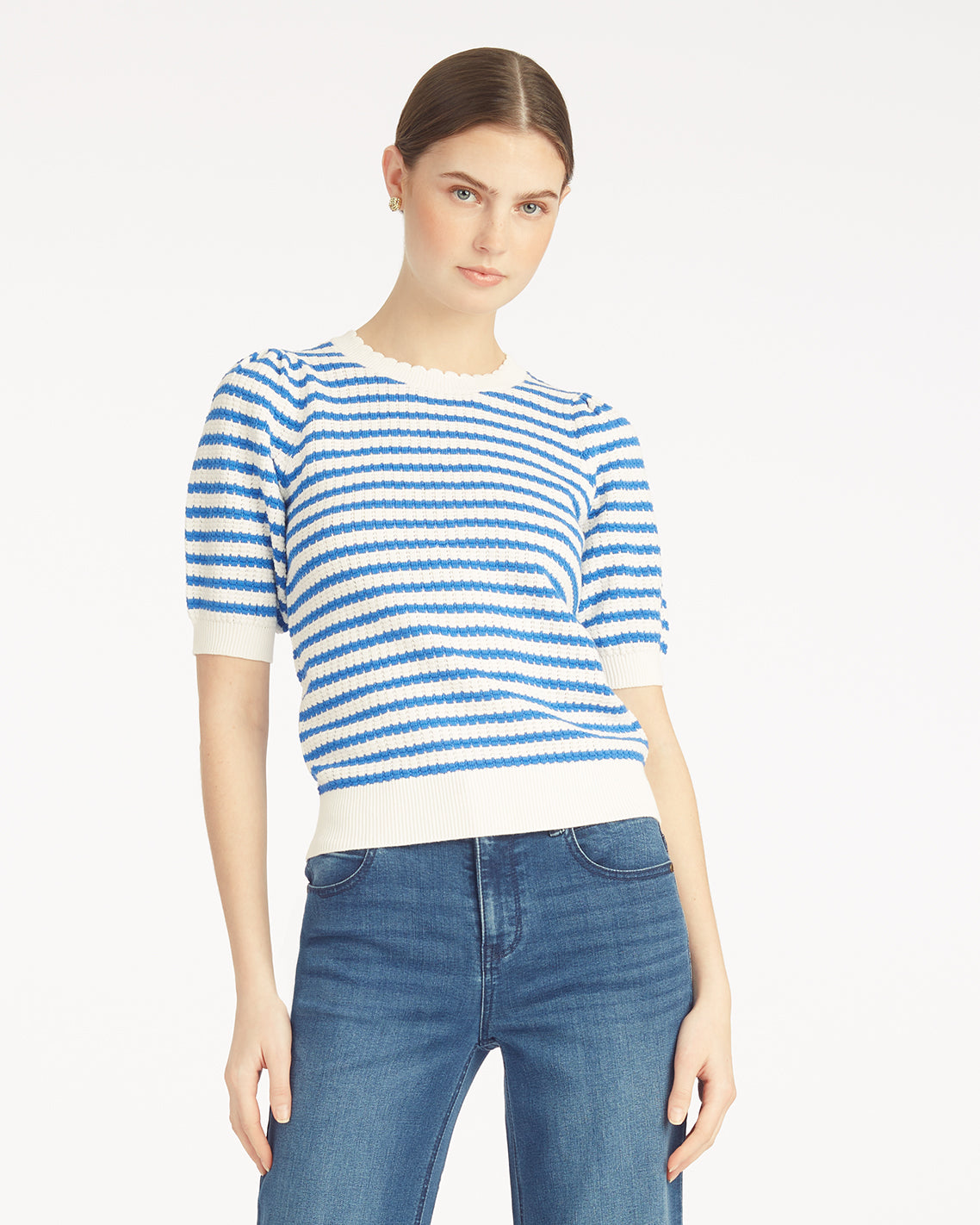 Sweater weather, for ever and ever. Our Stripe Crewneck Sweater is knit from a lightweight cotton blend which, combined with the short sleeves, ensures that it’ll work all spring and summer long. Wear it with your favorite jeans, shorts, jean shorts…
