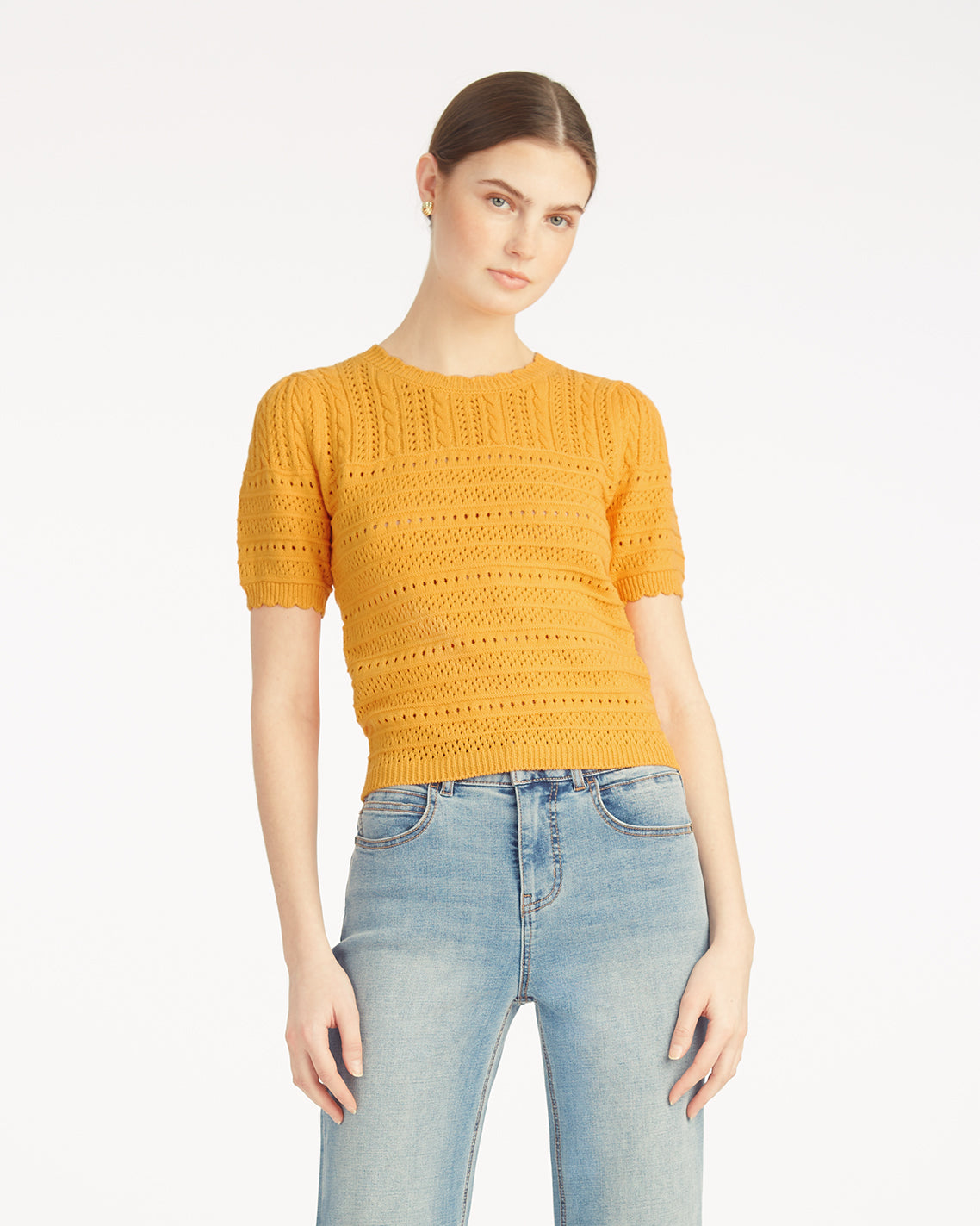 Sweater weather? Always. Our Pointelle Sweater is knit from a lightweight cotton blend which, combined with the the short sleeves, ensures that it’ll work all spring and summer long. Wear it with your favorite jeans, shorts, jean shorts…