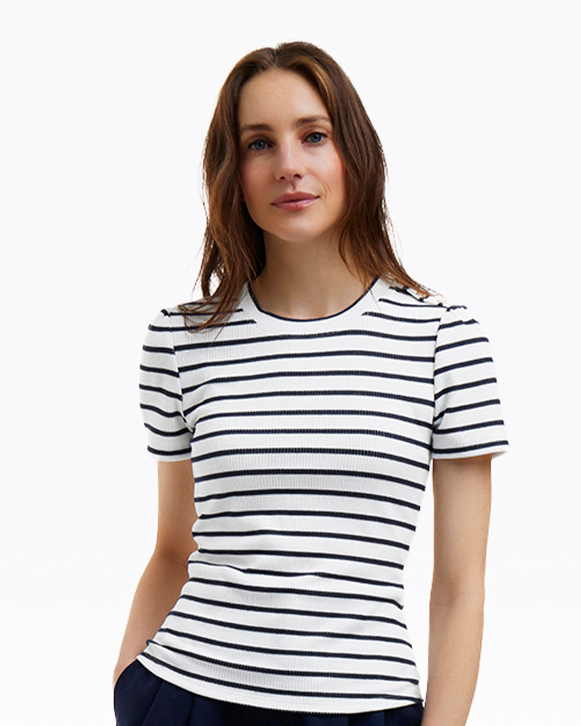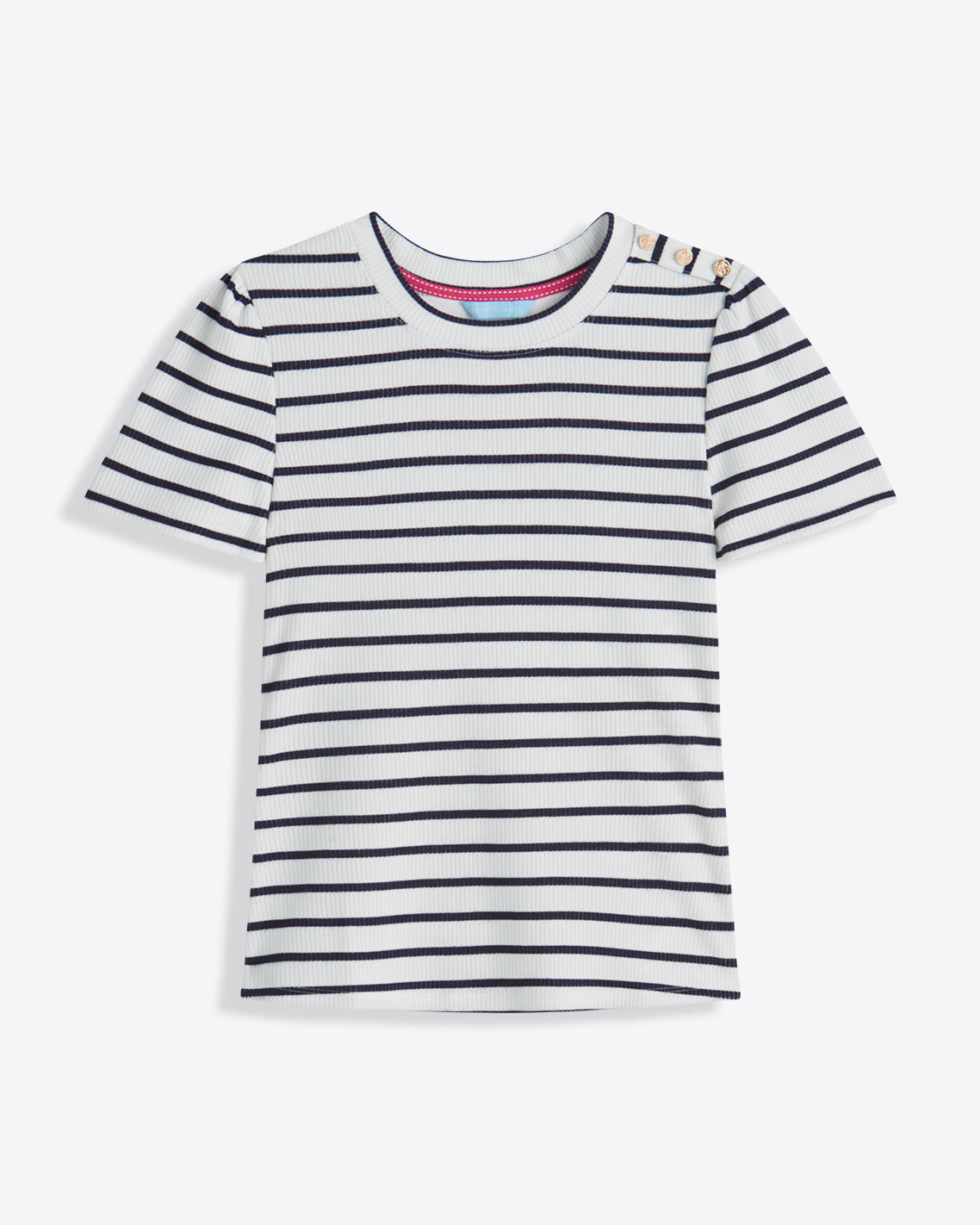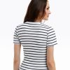 Show your stripes. Constructed from a soft, stretchy knit, our Stripe Crewneck Tee is as sleek as it is chic. Finished with a row of buttons on the shoulder, it has a classic look that’s a perfect match for your favorite jeans or pants. Wear it to work, weekend gatherings, wherever!
