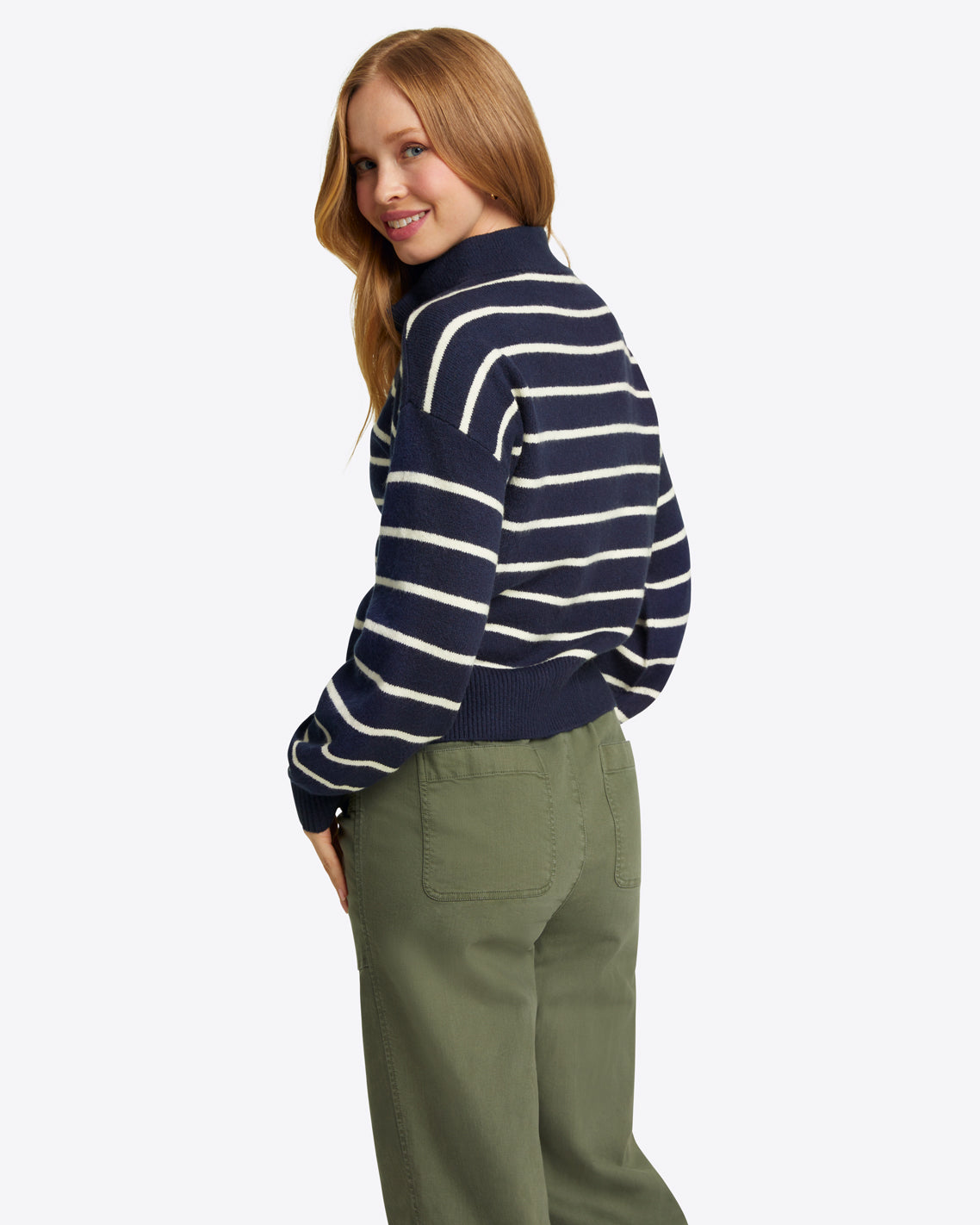Get in line. Knit from a soft stretch-cotton blend and finished with a zippered turtleneck, our Striped Quarter-Zip Sweater is both cozy and cool. You’ll love it year-round, over your favorite jeans, leggings, shorts…