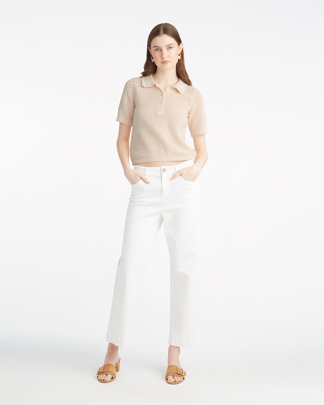 Prep cool. Our Sweater Polo With Scalloped Collar combines a classic silhouette (knit from a lightweight cotton-wool blend) with feminine touches. Wear it with jeans, shorts, jean shorts…